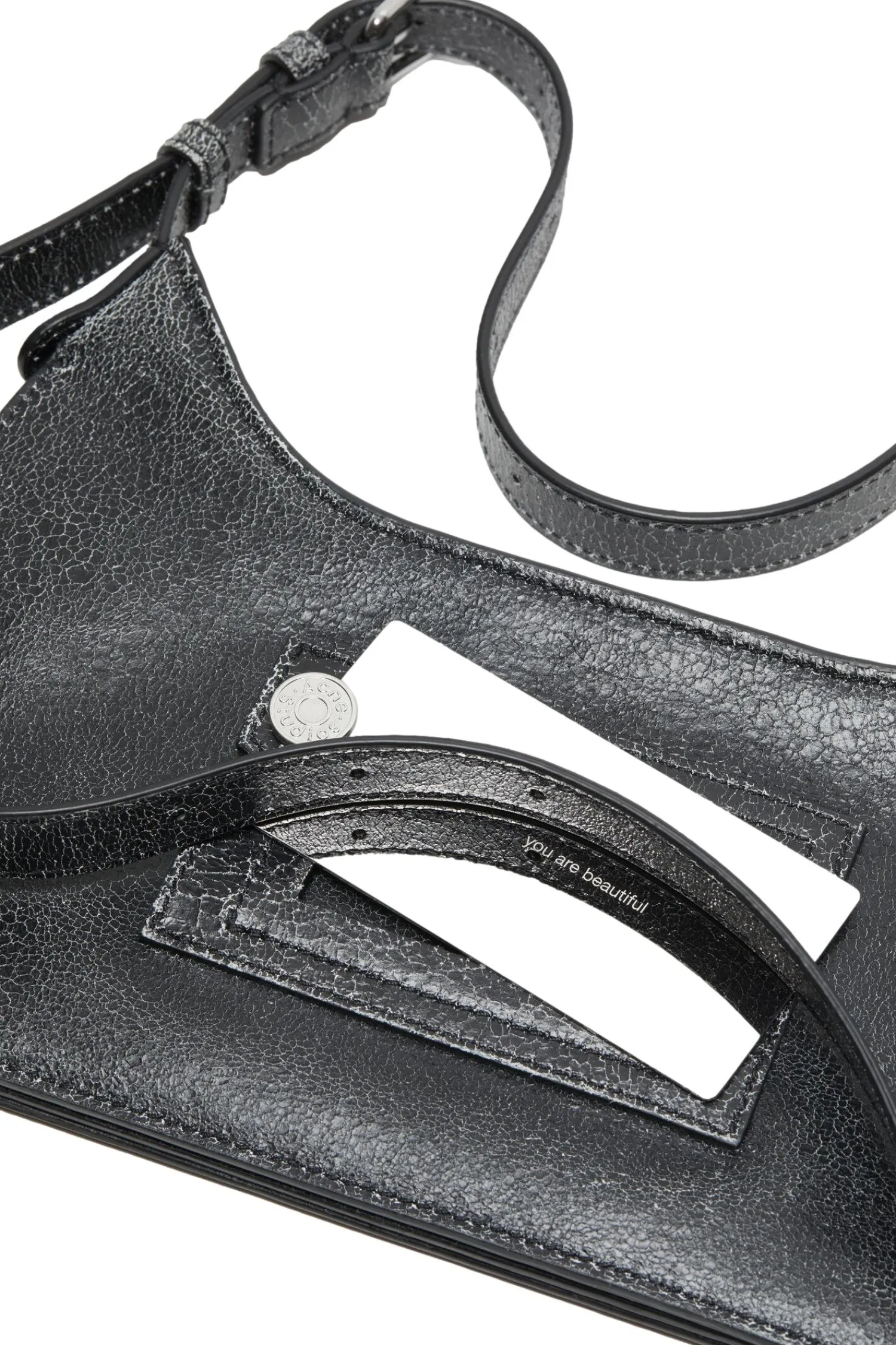 Platt miniskulderveske har en flat minimalistisk silhuett, en mykt buet topp med strukturerte trekkspillfolder på siden og bunnen. Laget av skinn med en krakelert finish. Komplett med en Acne Studios-logo i skinn foran og et dekorativt avtagbart speil på baksiden.