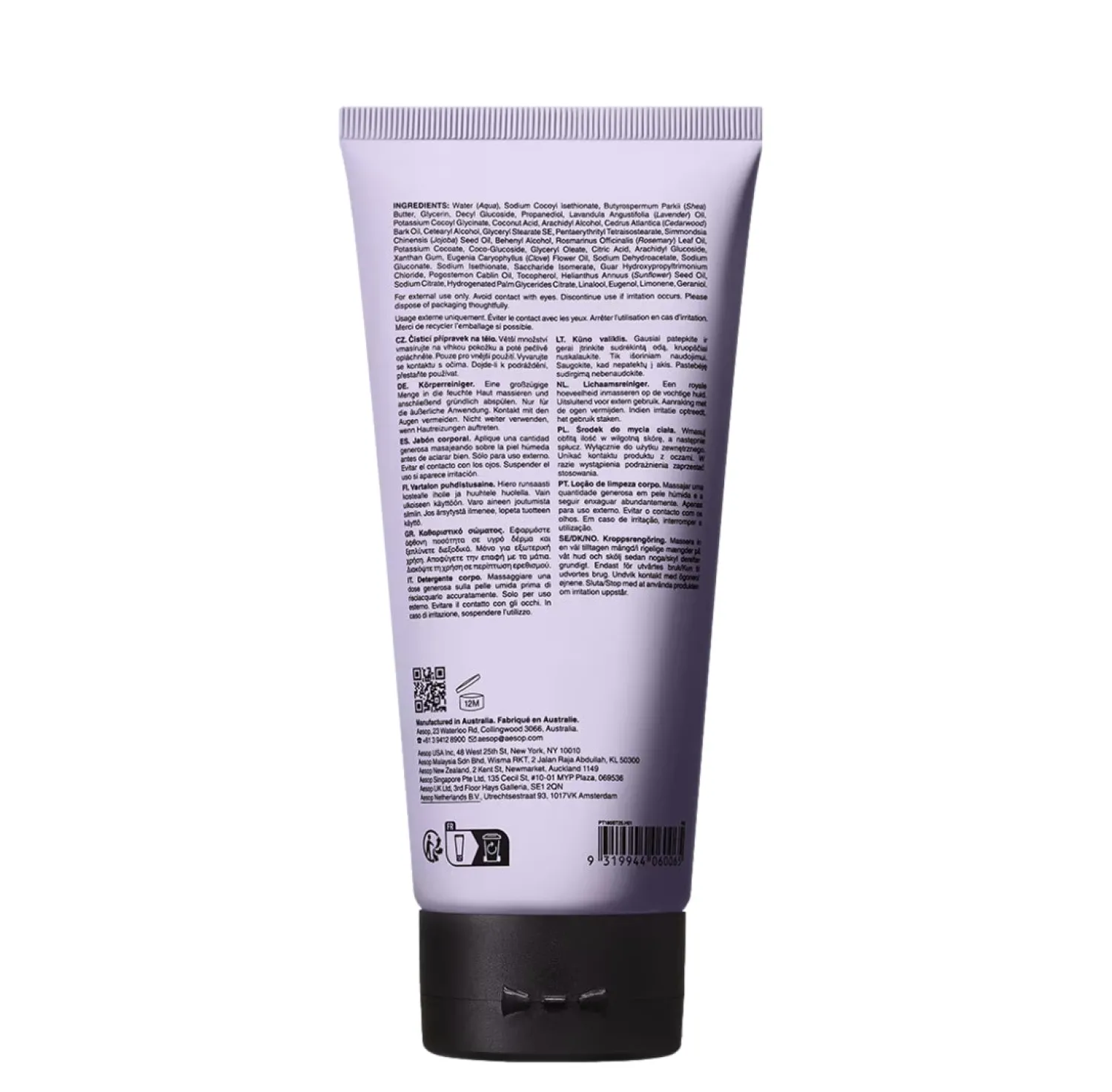 En mild, fuktighetsgivende rengjøringsmiddel med en beroligende kremtekstur som inneholder en blanding av planteprodukter kjent for sine rensende egenskaper. Ideell for tørr eller dehydrert hud.
