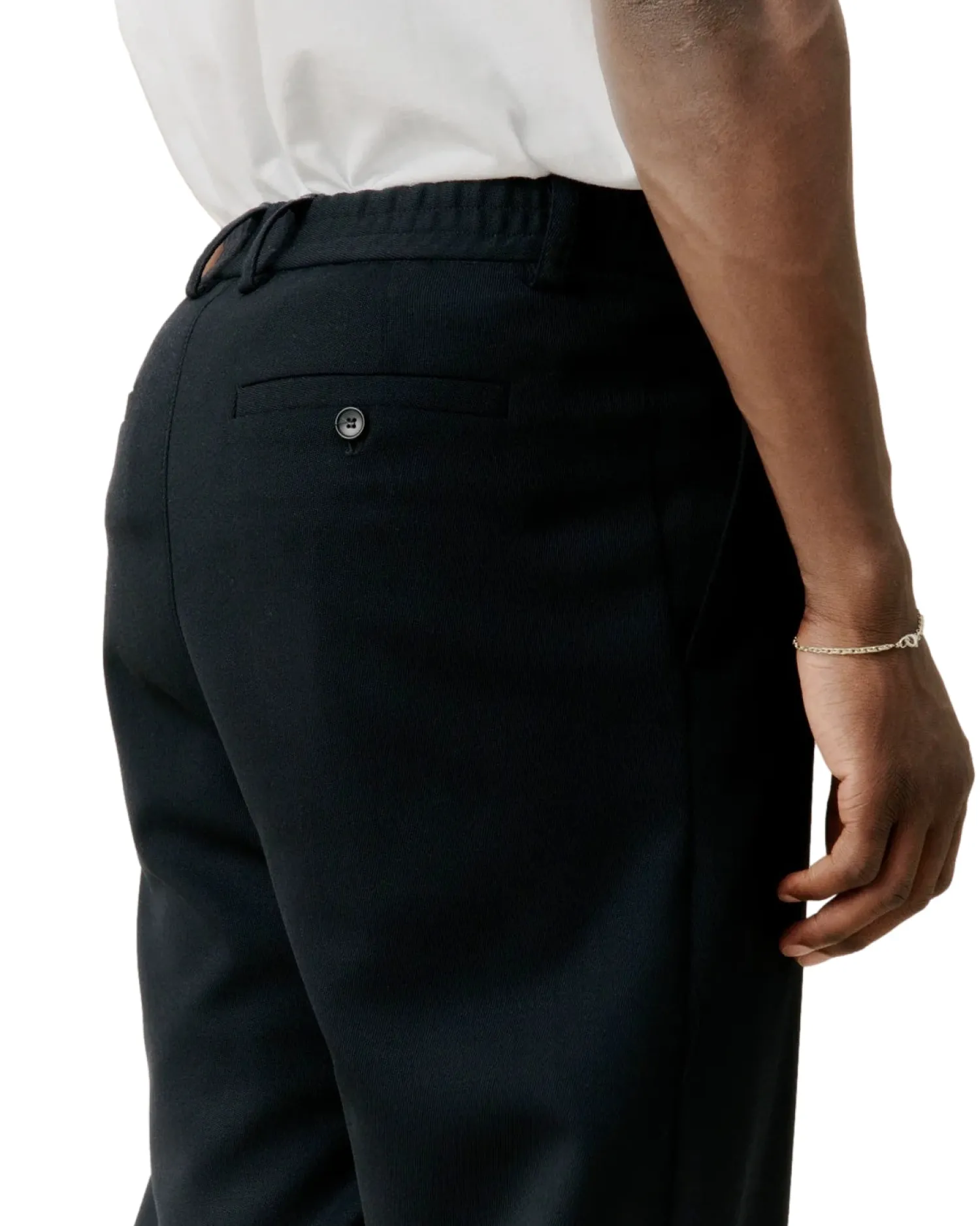 Denne buksen med brede ben i full lengde er perfekt for å fullføre en hel, moderne dress i interessante silhuetter eller bare en skjorte eller t-skjorte. Elastisk midje, gylf med glidelås midt foran og knappelukking. Mellomlommer bak og skrå lommer foran. Moderne skreddersøm for allsidig bruk.