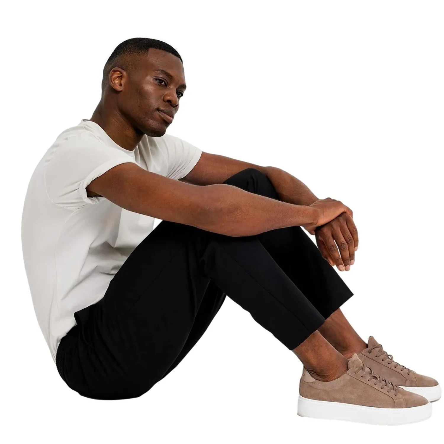 Laget av 62 % resirkulert polyester, 33 % viskose, 5 % elastan.
