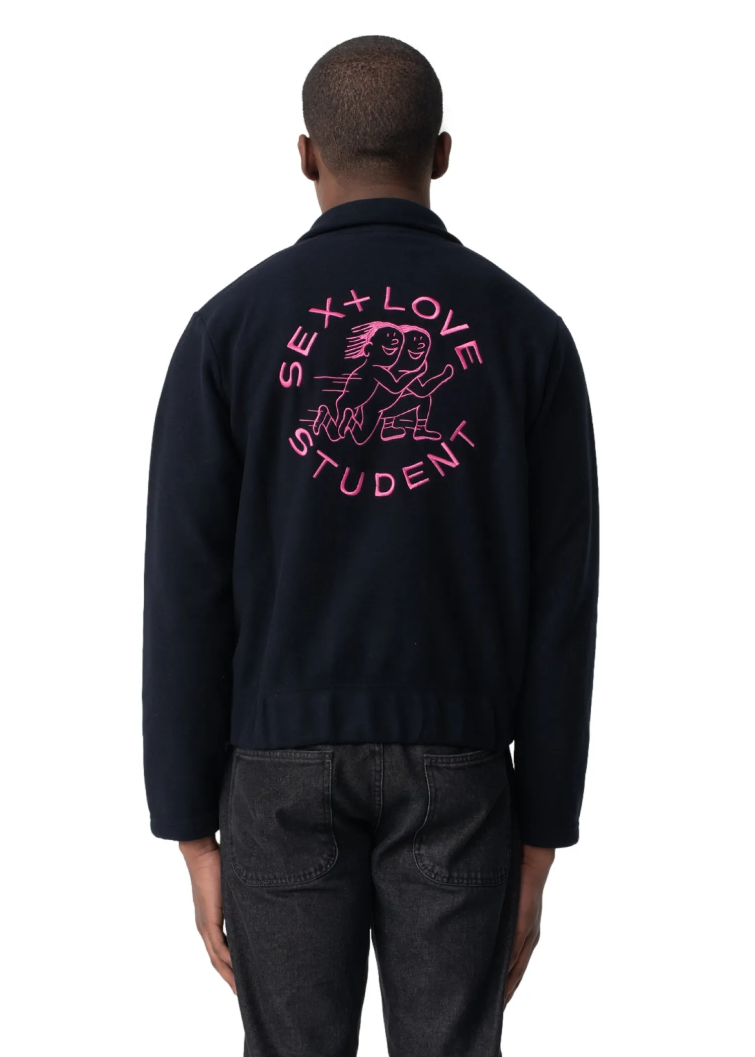 Fleecegenser med zip i halsen, delvis høy hals og lange ermer.