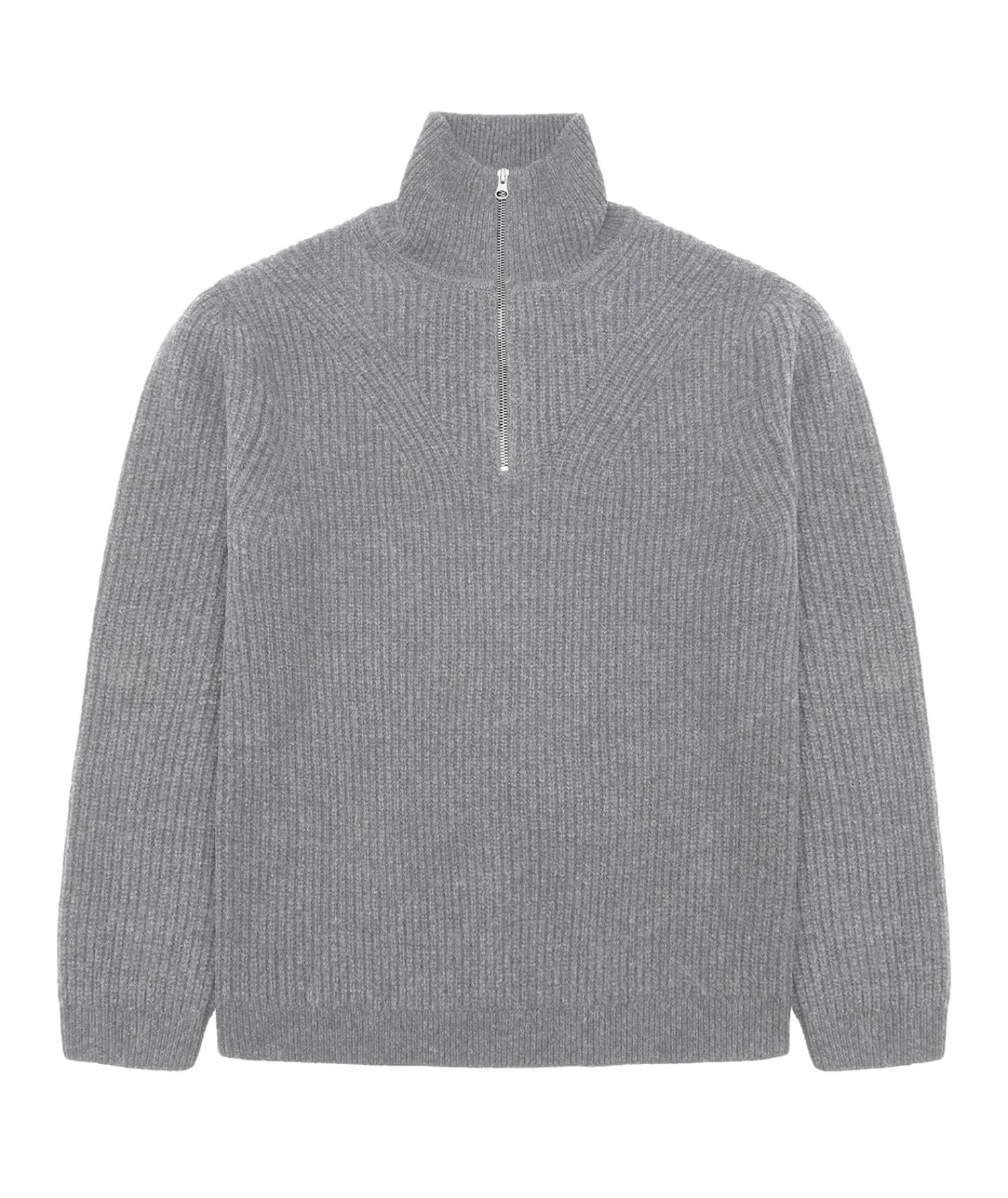 Halv-zip genser i ribbestrikket ullkvalitet.