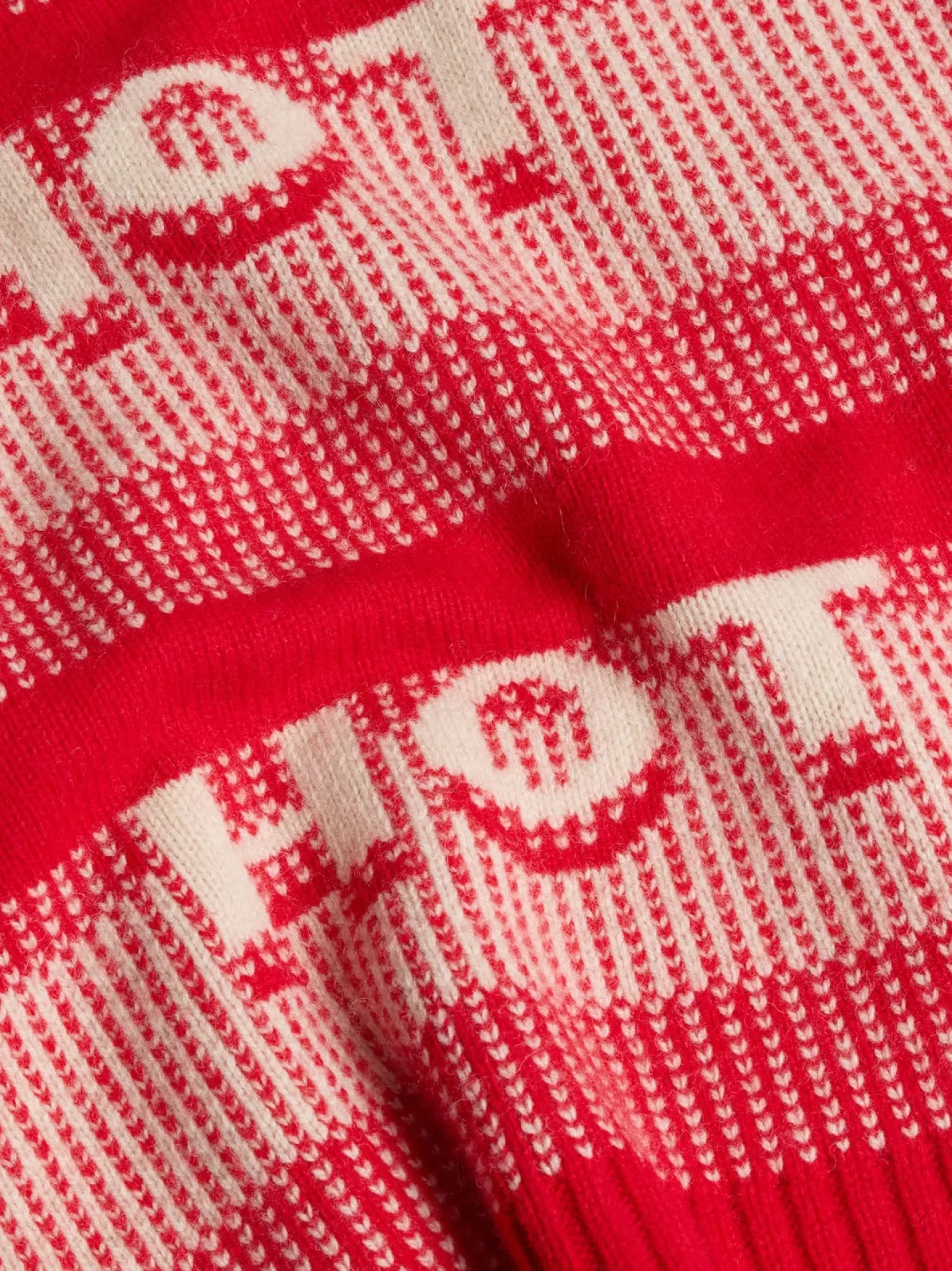 Hot Cropped-genseren er laget av ren ullstrikk med intarsia-detaljer. En normal passform med en tilpasset høy linning, rund hals og isolerende ribbekanter.