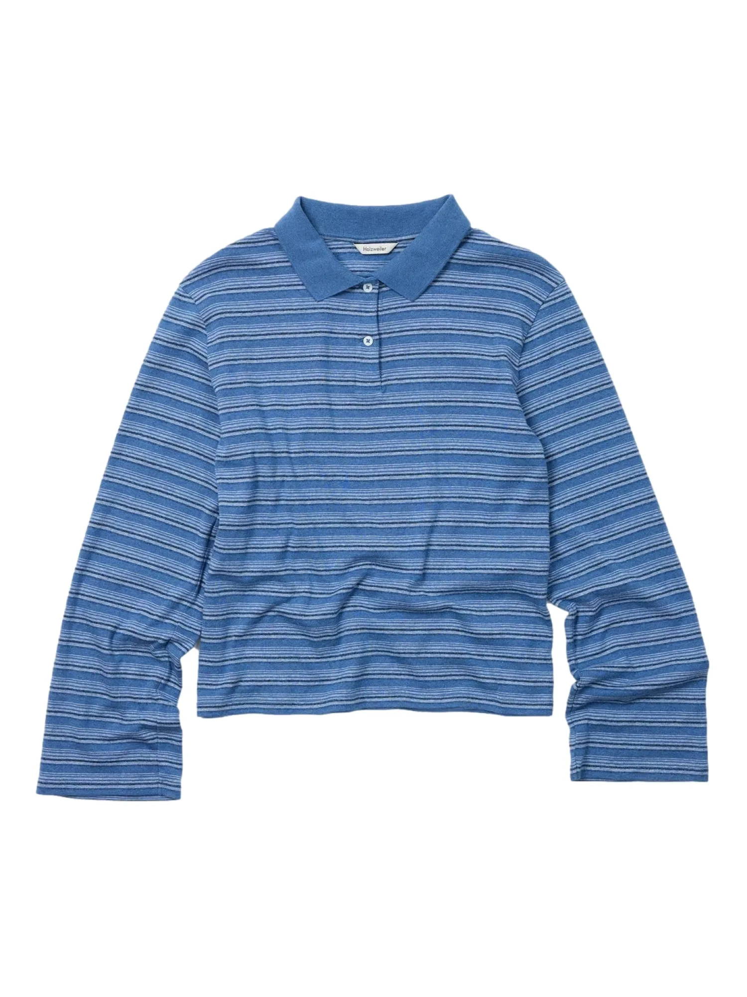 Sunny-poloen er laget av pustende, stripete bomull, og har en avslappet passform som er behagelig i varmt vær. Den har klokkeermer og en klassisk polokrage med knapp.