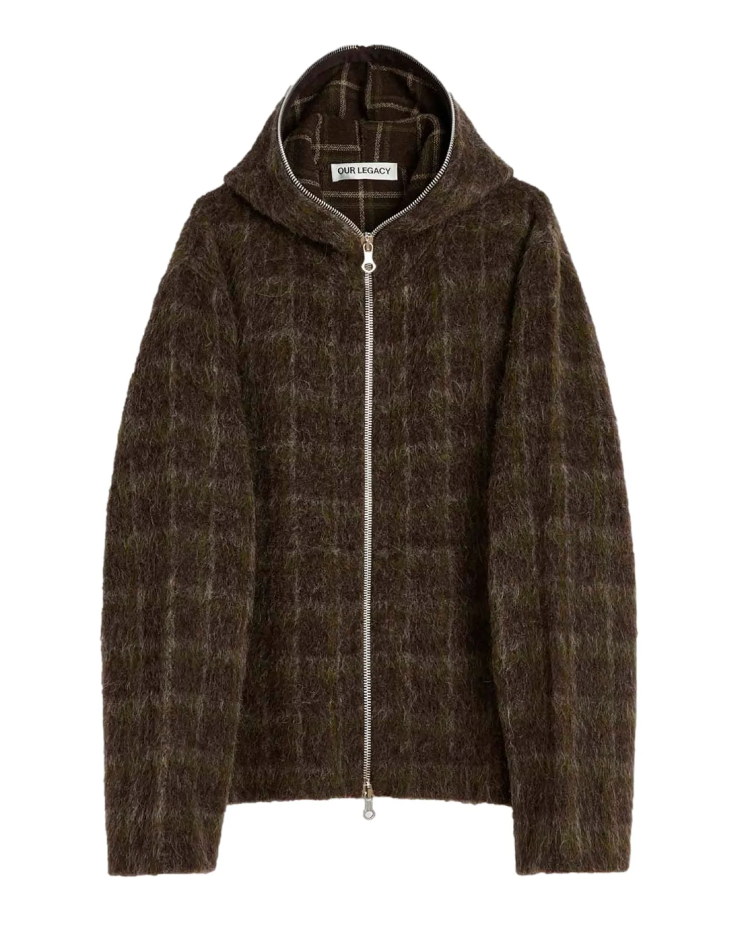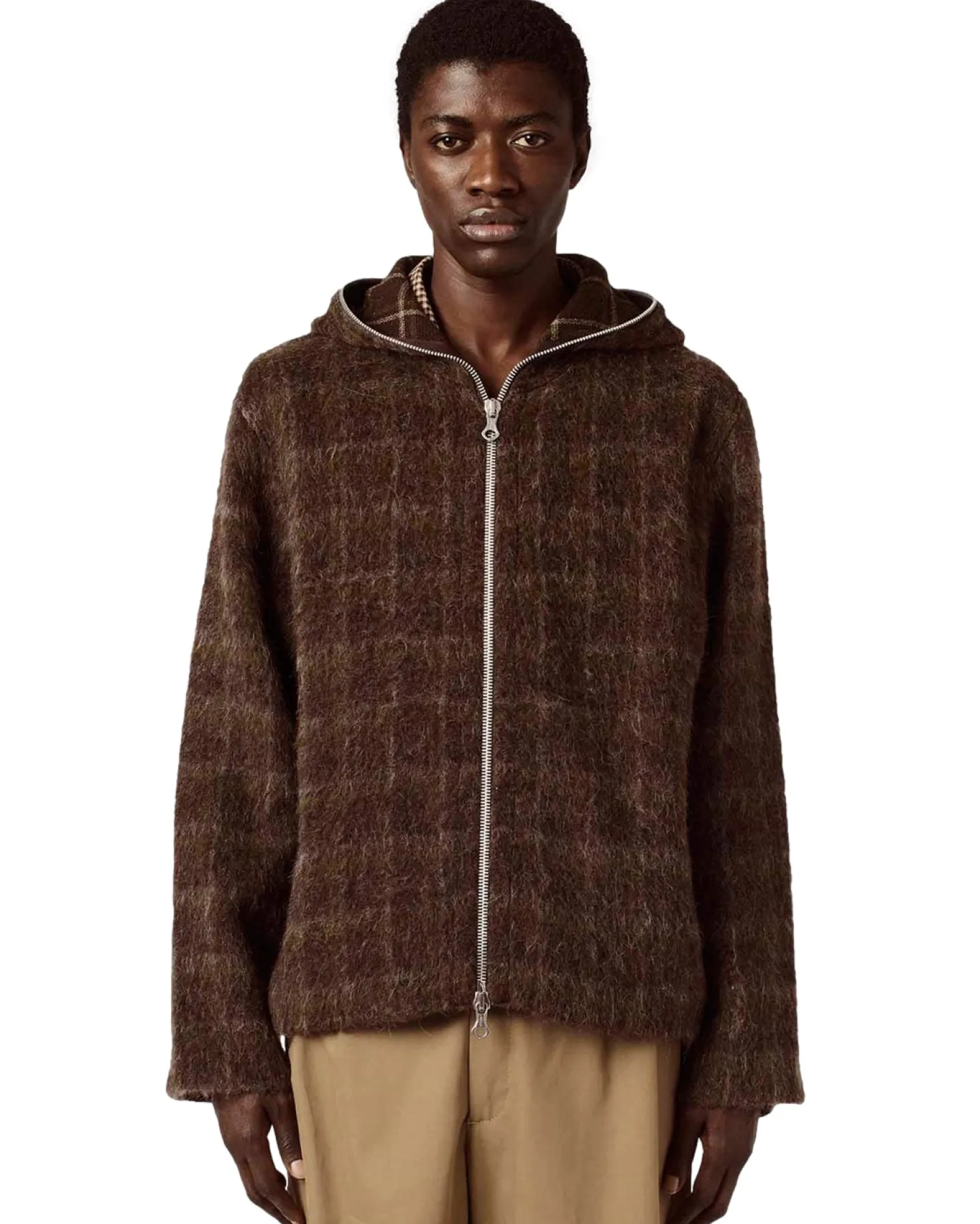 Hoodie med glidelås i mohair tekstur kvalitet.