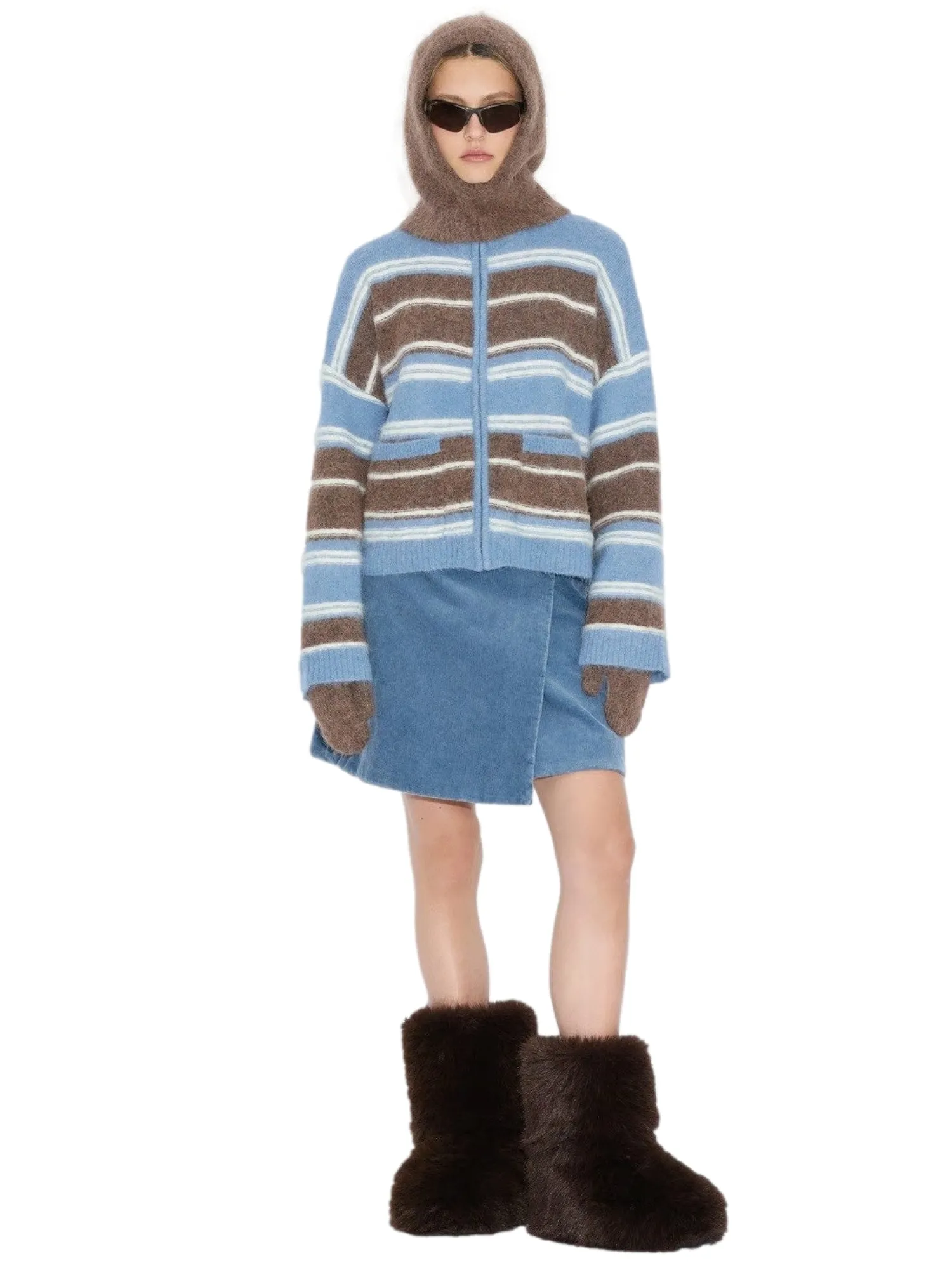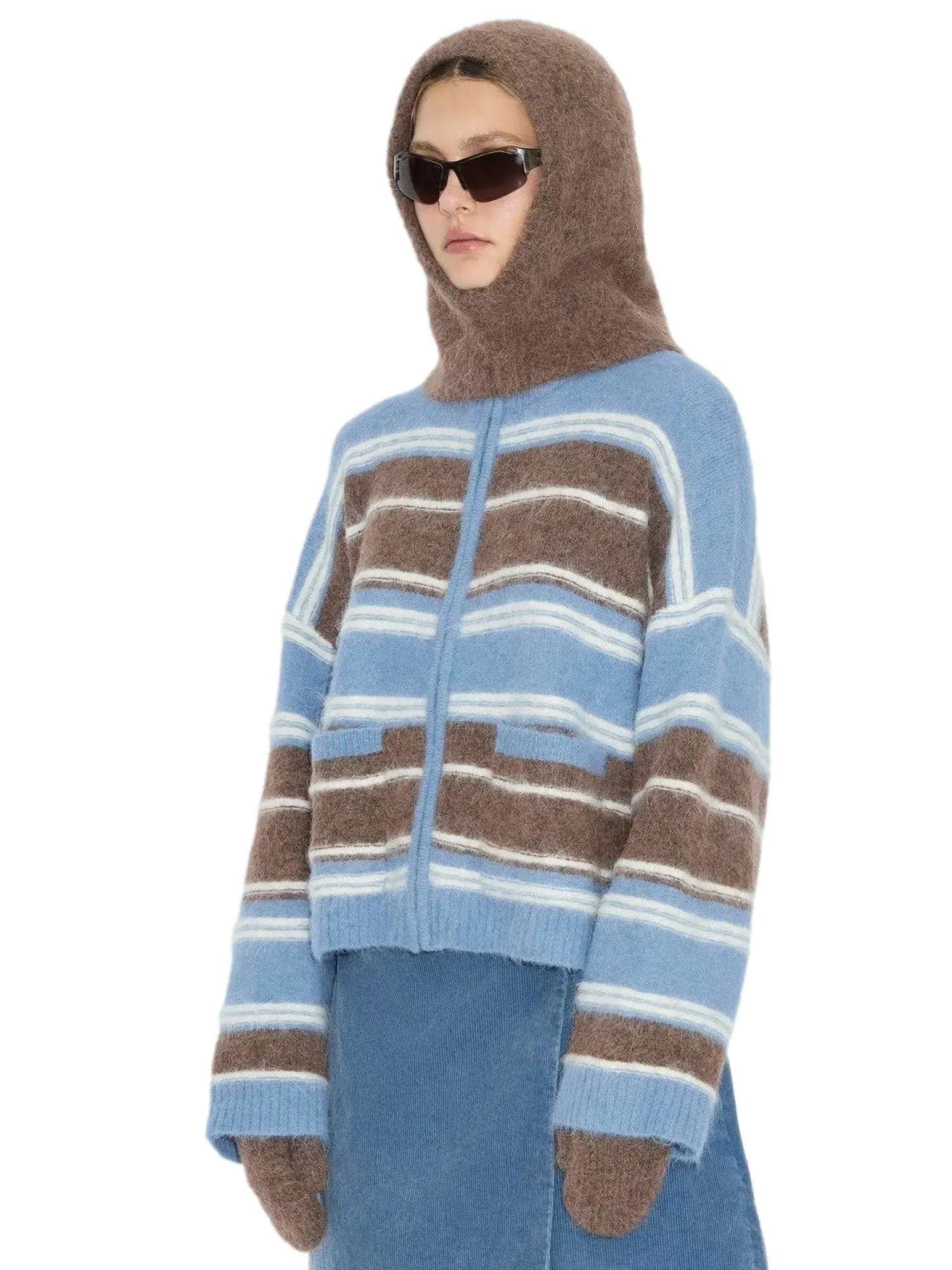 Laget av 55 % alpakka 24 % akryl 19 % nylon 2 % elastan (spandex).