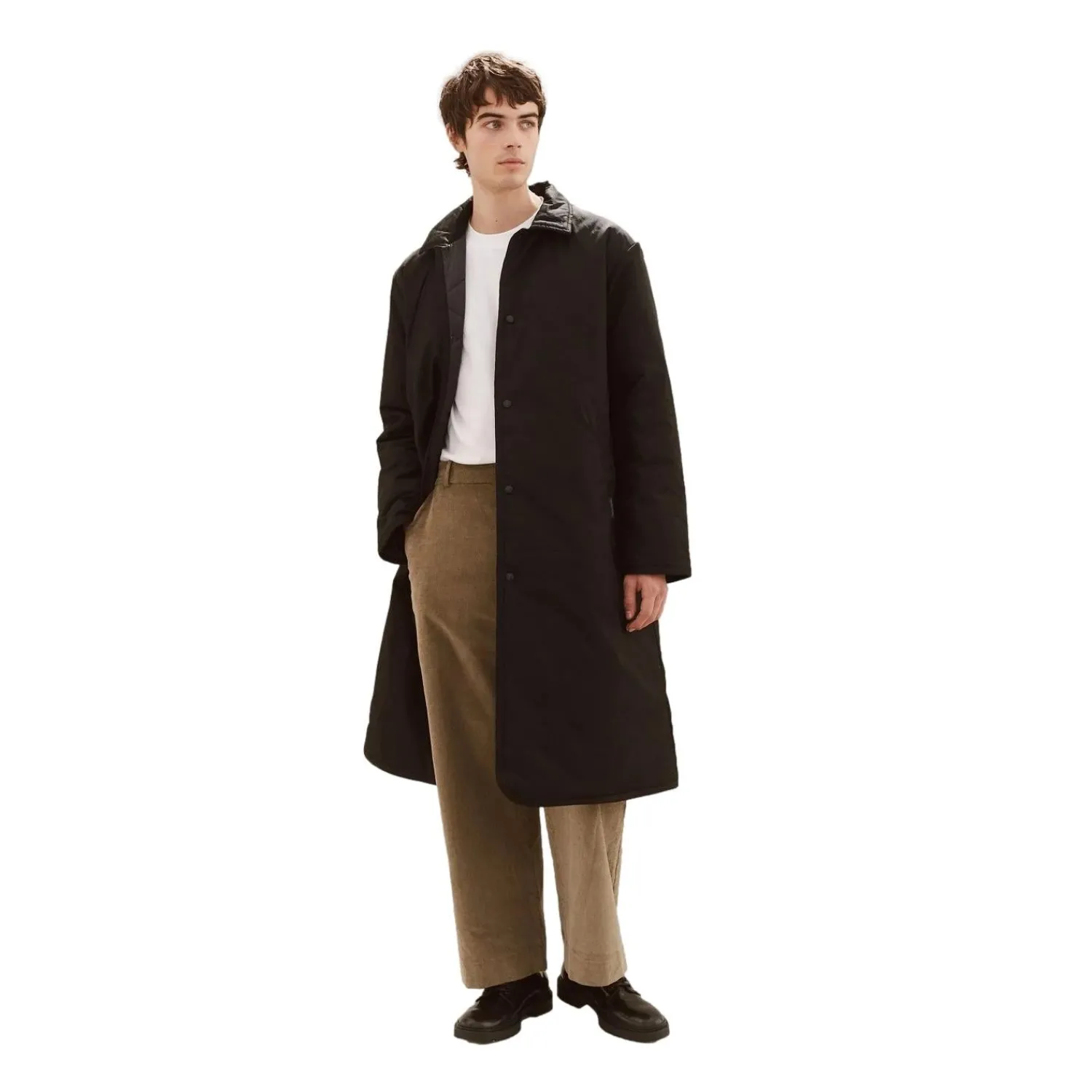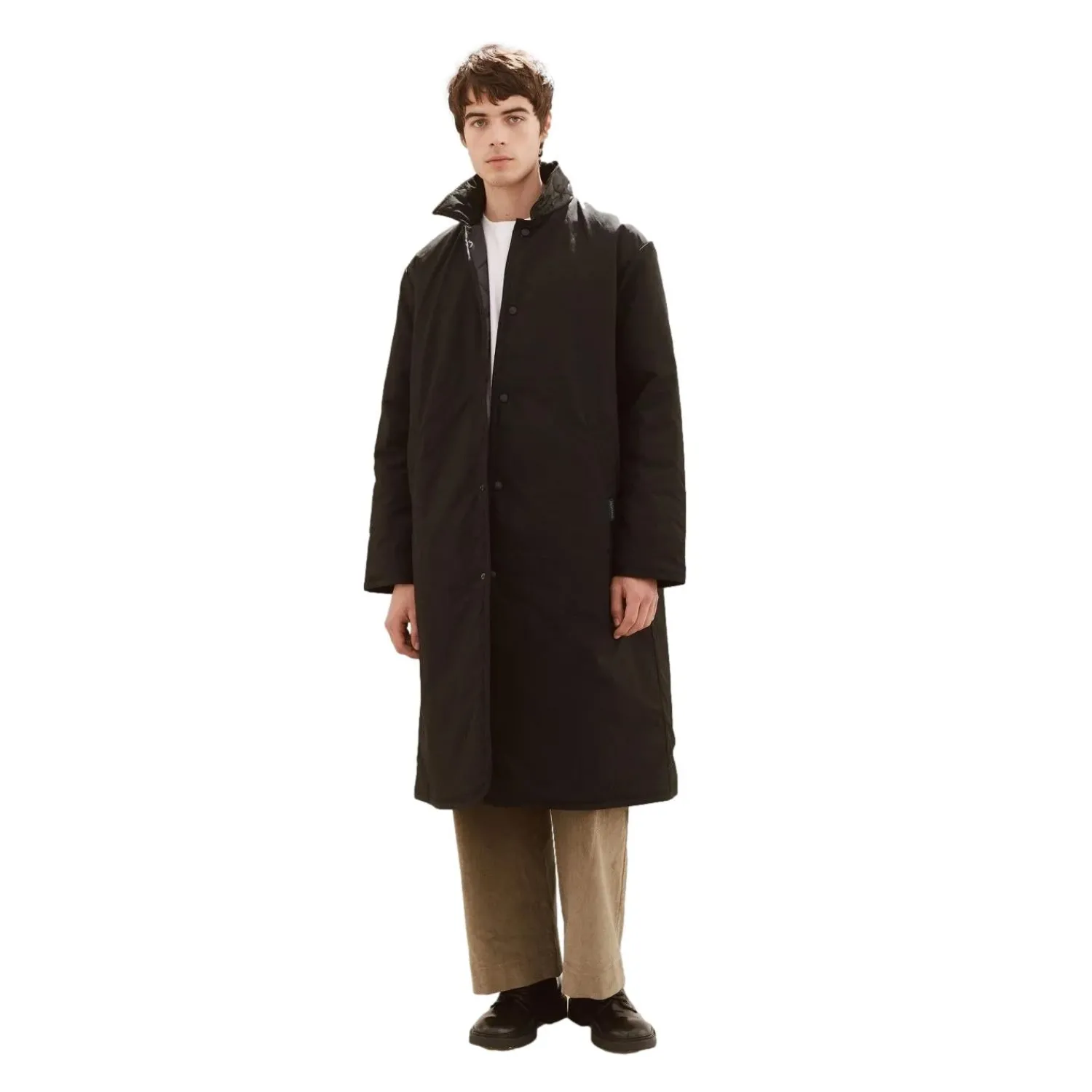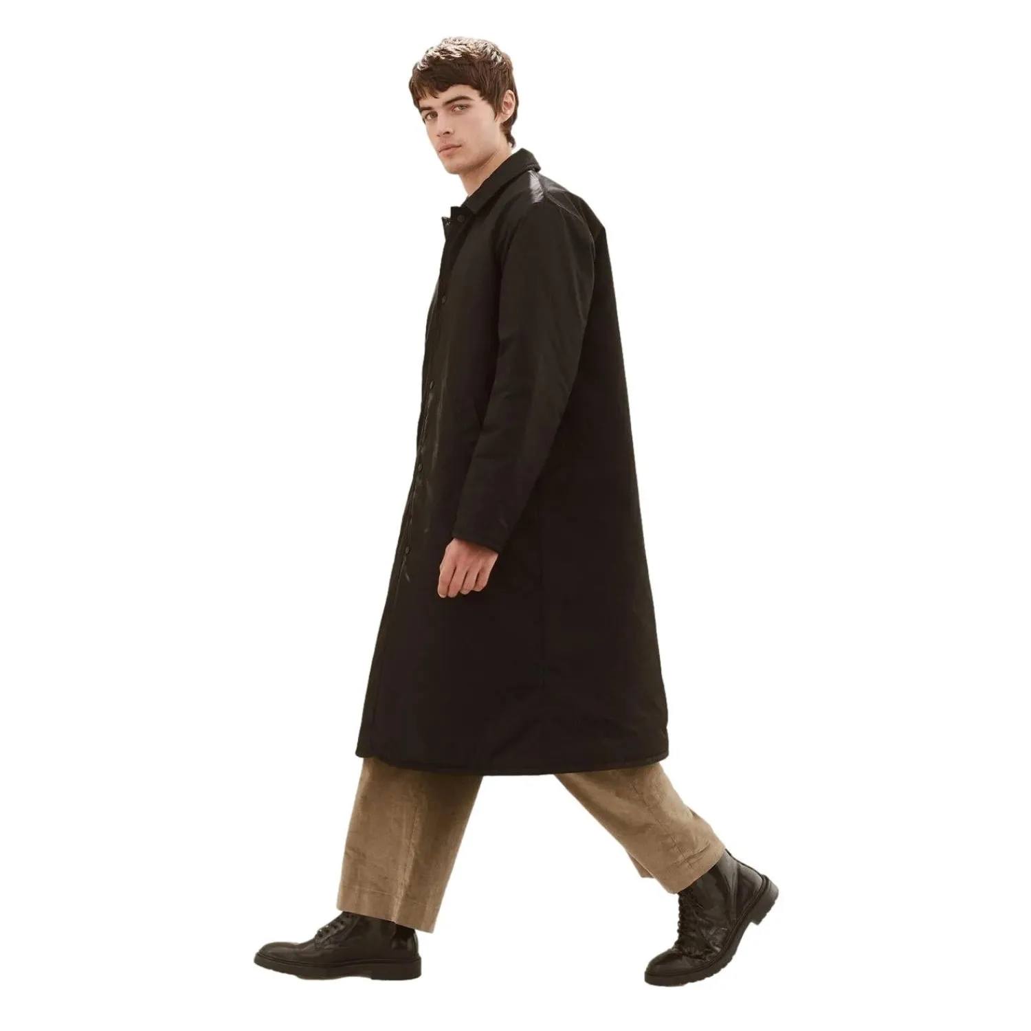 Frakken har draperingen til en tradisjonell overfrakk, men med funksjonaliteten som tilbys av vannmotstanden og innvendig quilting.