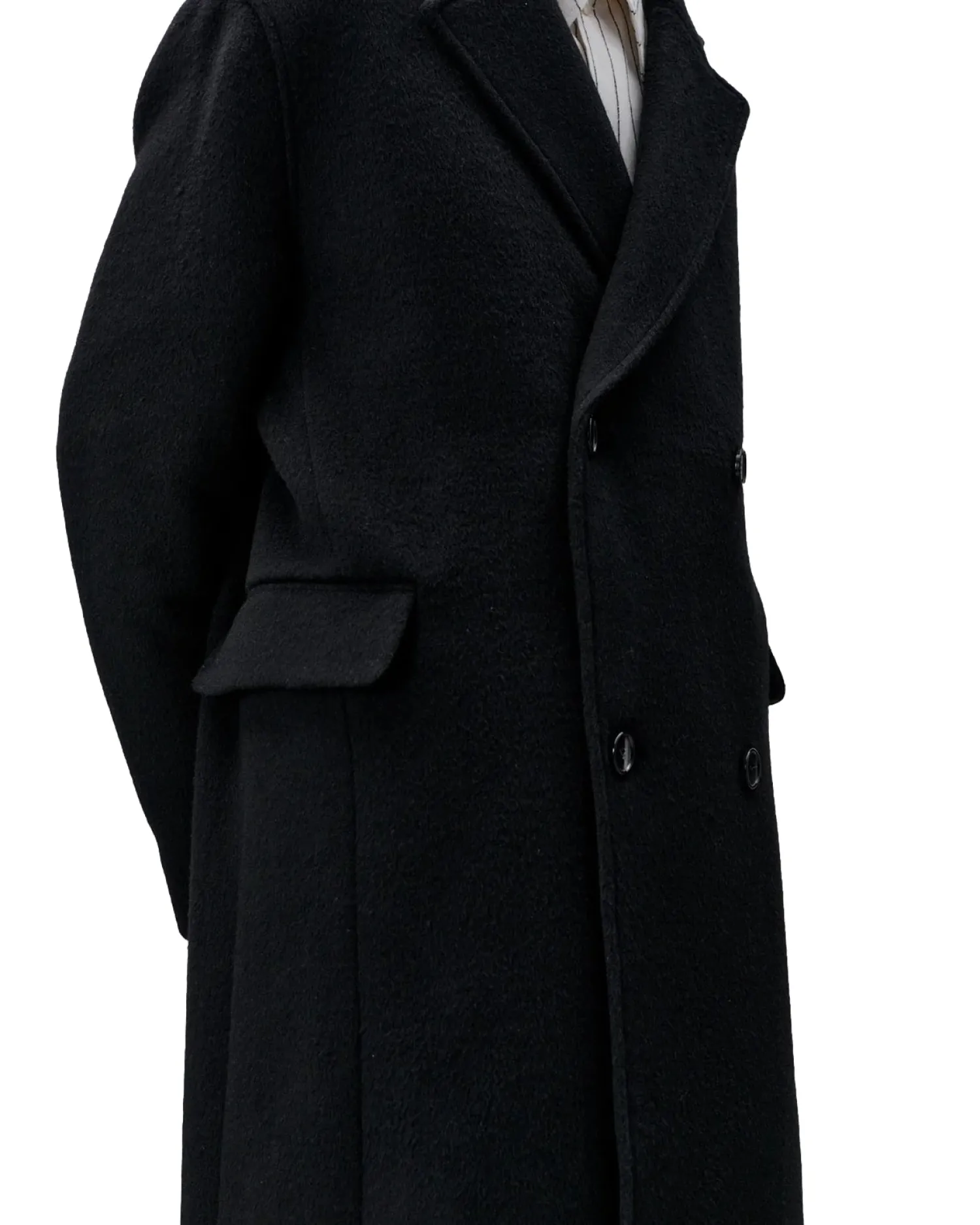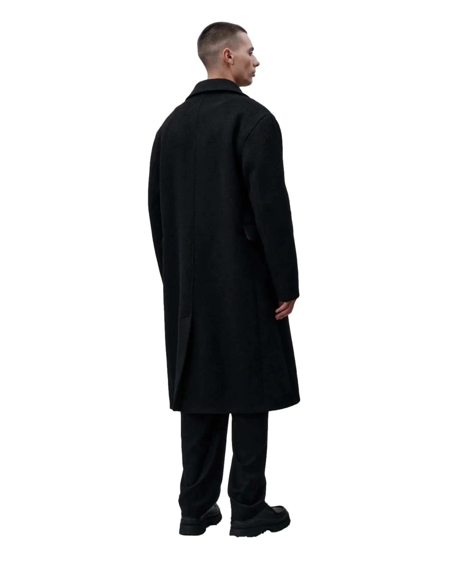 Moderne skreddersøm for allsidig bruk. Denne formelle kåpen med klassisk snitt er laget av en italiensk børstet, kraftig ull og er et klassisk libertinerplagg. Har en lett A-form med lav skulder, skrå velourlommer og en høy splitt midt bak. Kåpen er skåret under kneet, helfôret og har MEIDA-termoisolasjon.