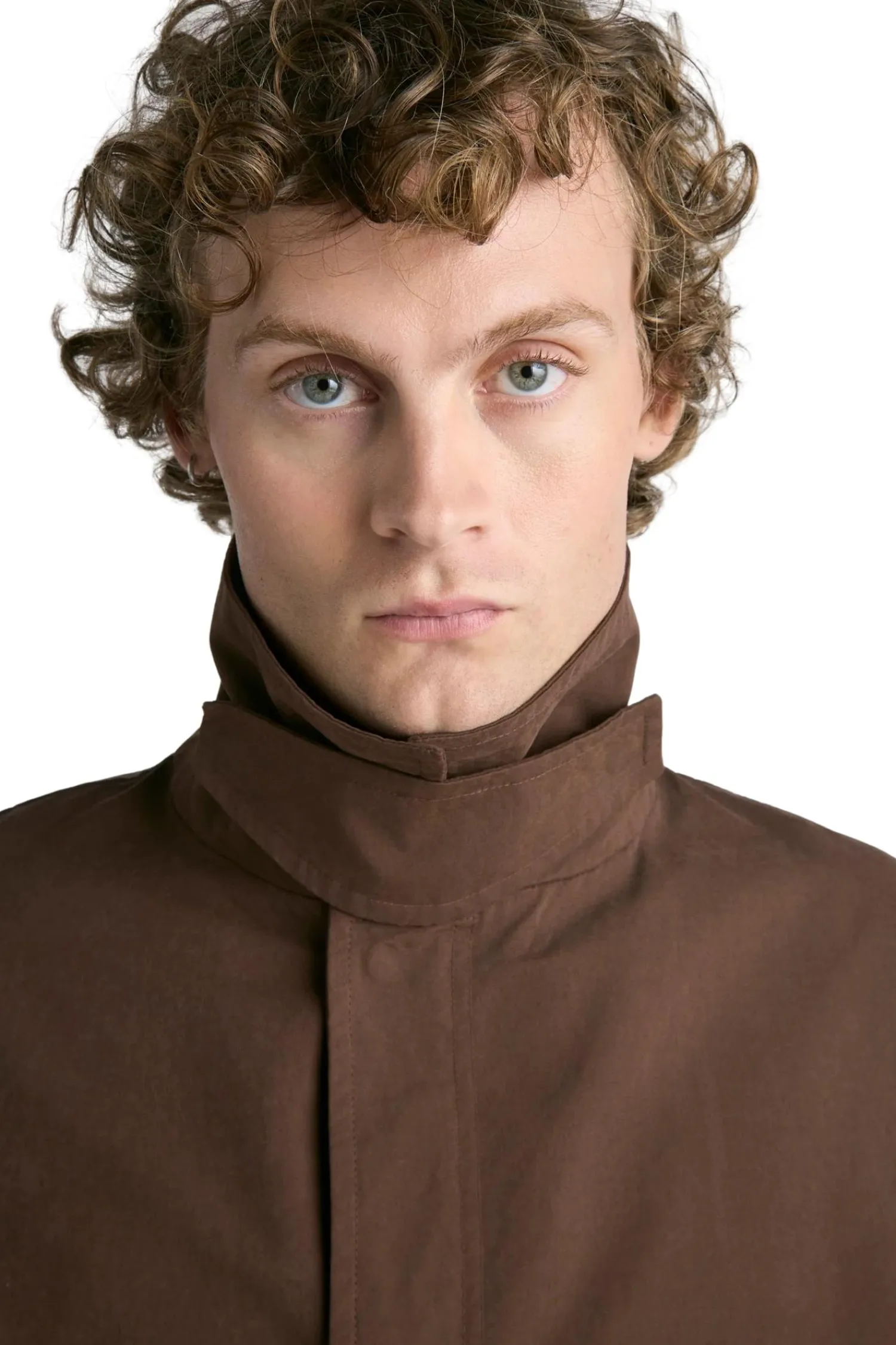 Gill, vår korte tekniske voksfrakk. Laget i et teknisk stoff fra Olmetex i Italia, med et mykt voksbelegg som beskytter mot elementene. Fôret med et spesialtilpasset flanellfôr.