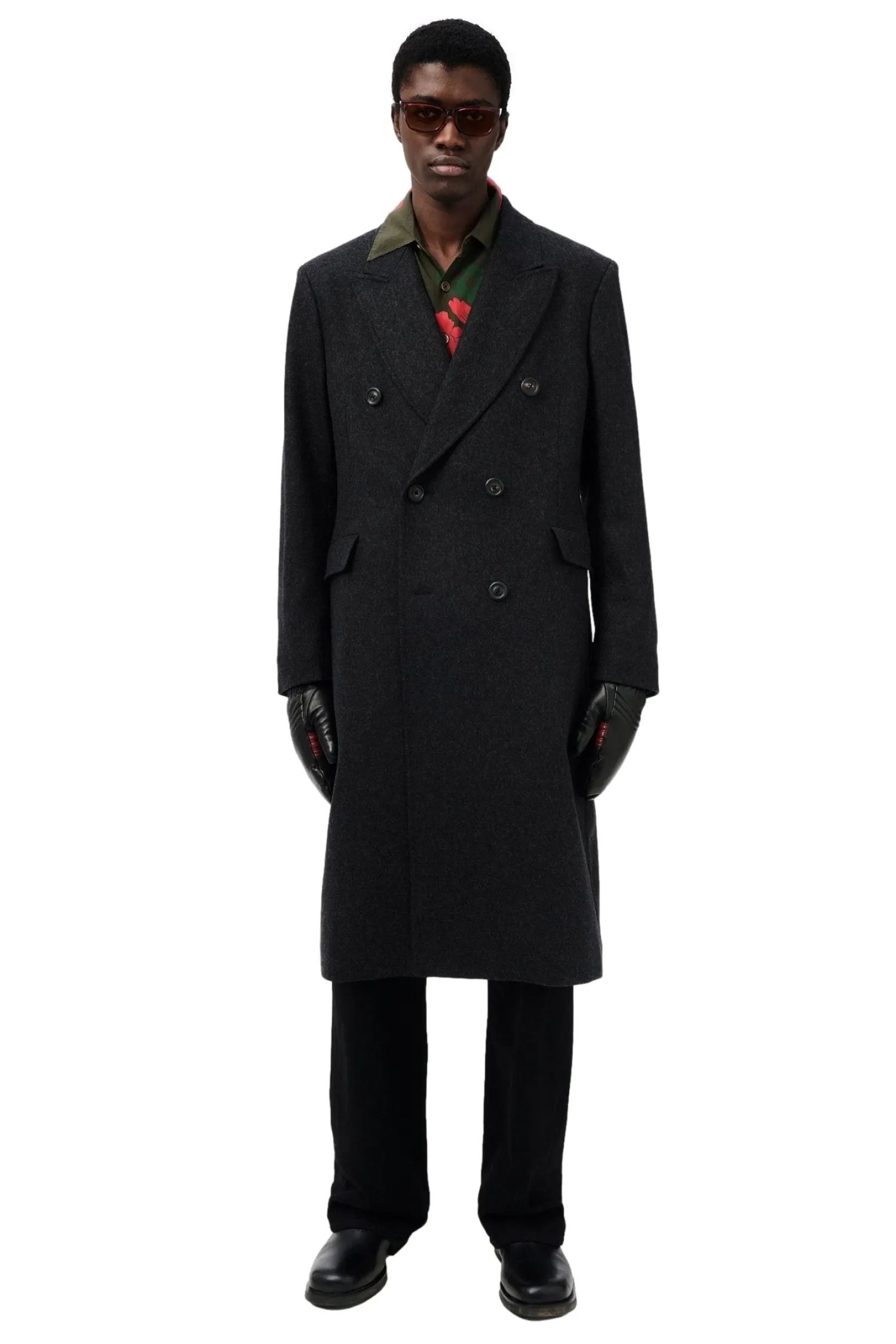 Produsert i italiensk jomfruull og polyamid med vannavvisende egenskaper, har denne hvalfrakken for menn en avslappet, skreddersydd passform og har en dobbeltspent konstruksjon med hornknapper, spiss slag, heldekkende fôr, lommer med klaff og en enkel splitt bak.