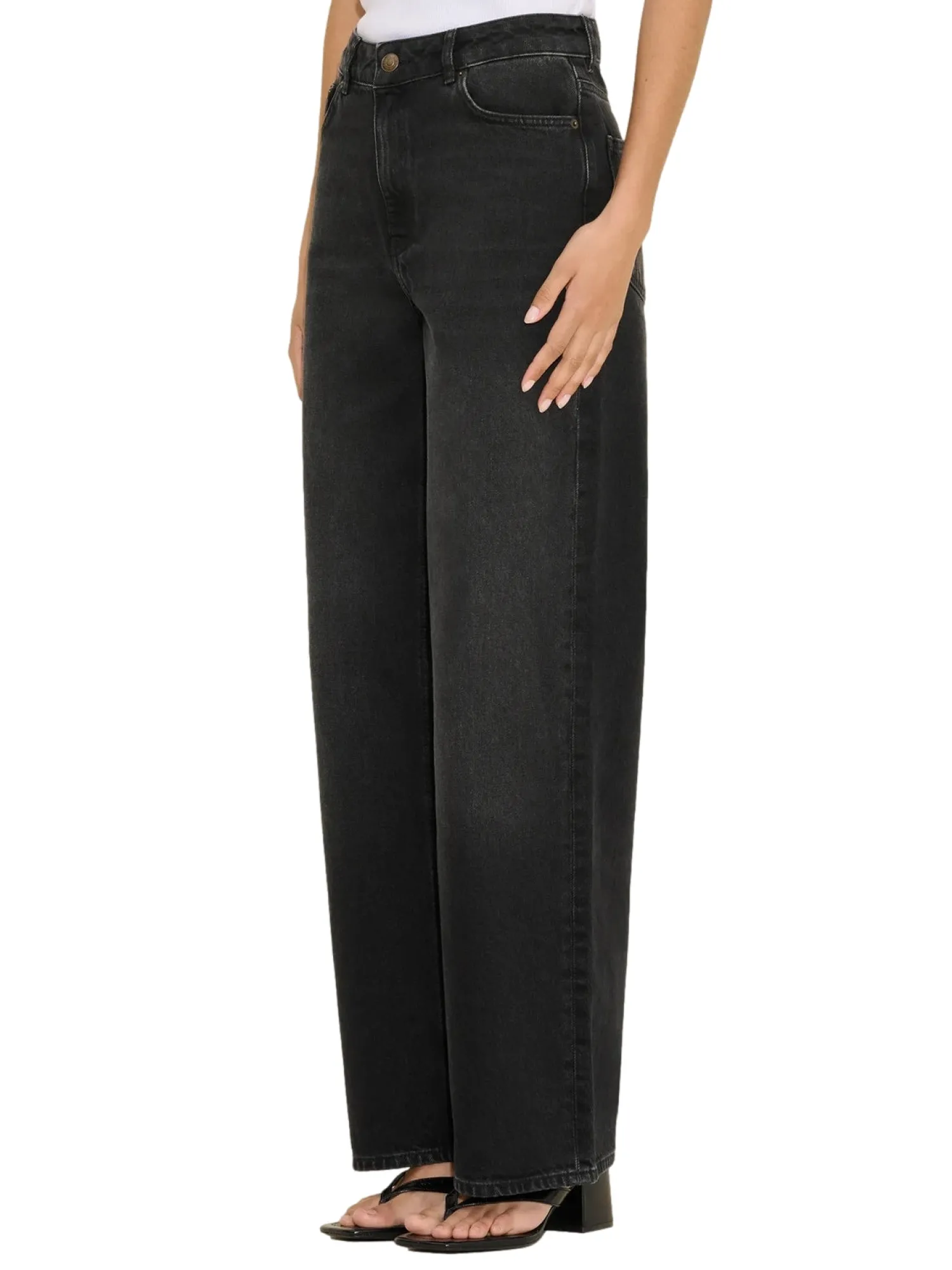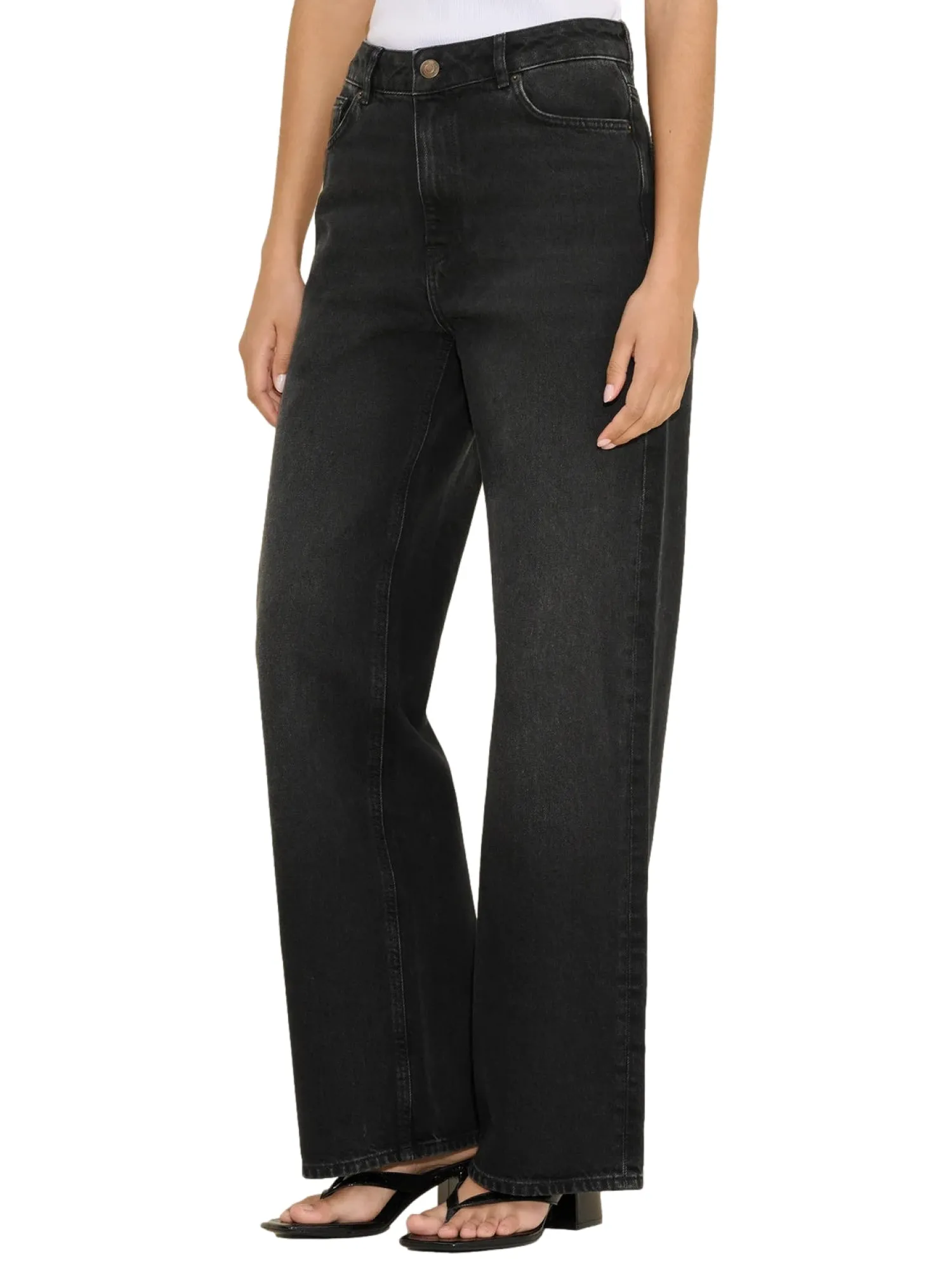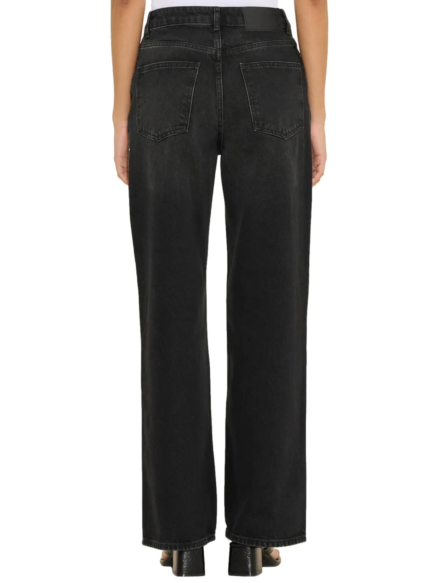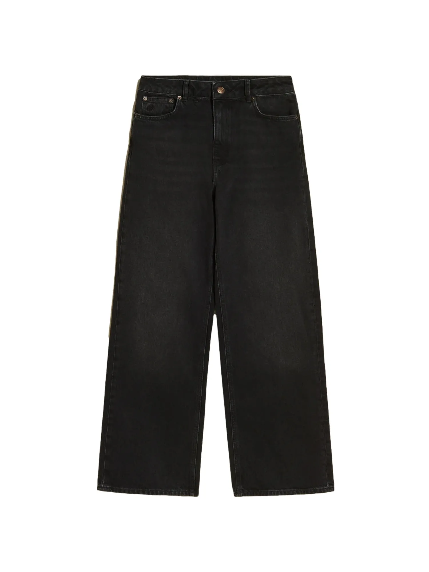 Jeans i vid og løs passform med høyt liv. Liten brodert logo.