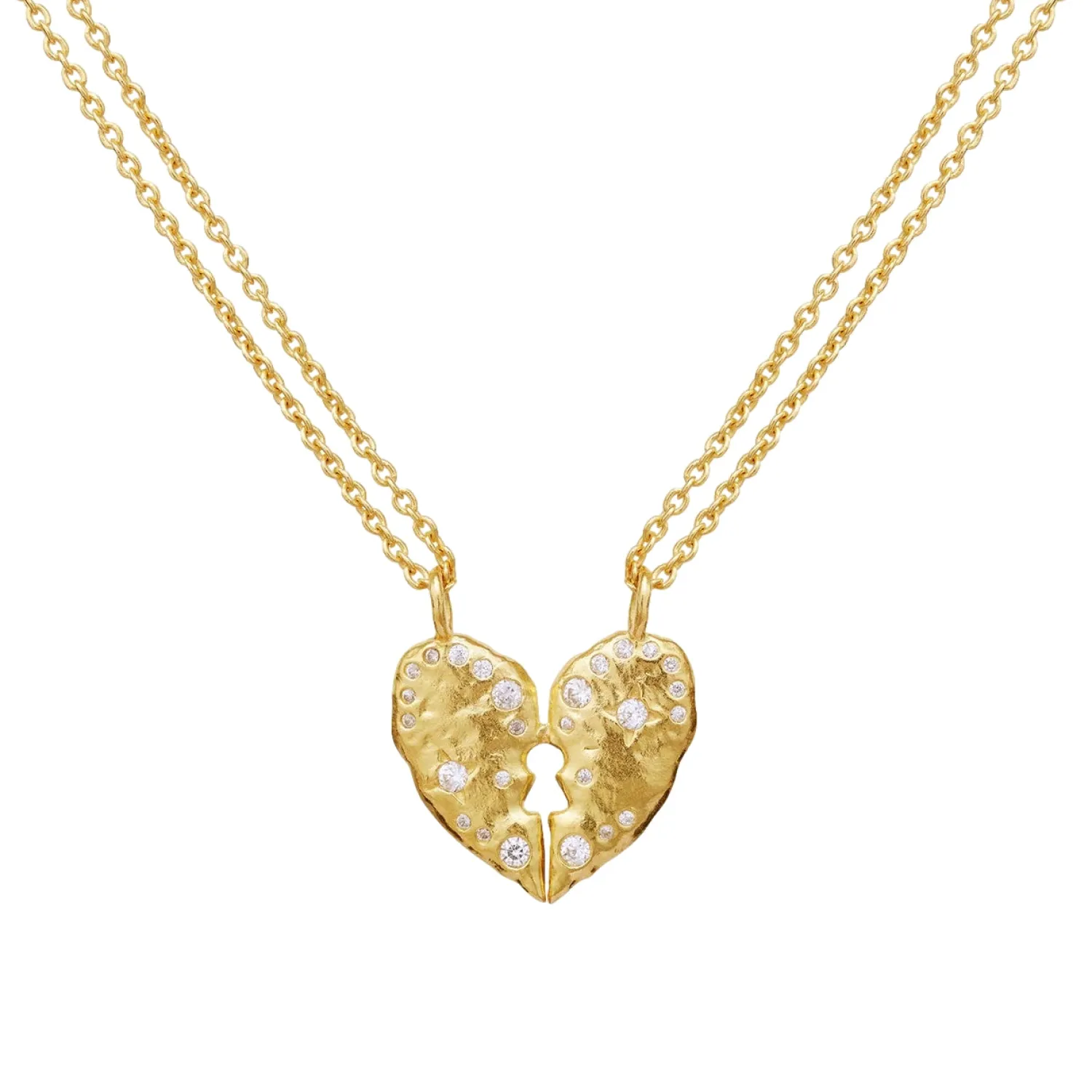 To halvdeler blir til en helhet i Keeper-halskjedet. Med dobbeltkjede og to halve hjerter kan du enten beholde det hele selv eller dele det med en du holder av.