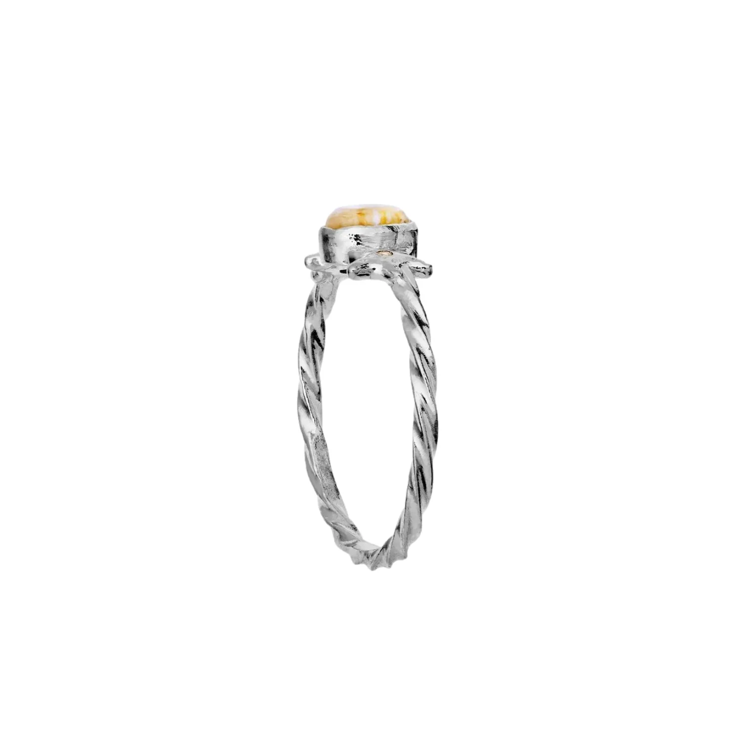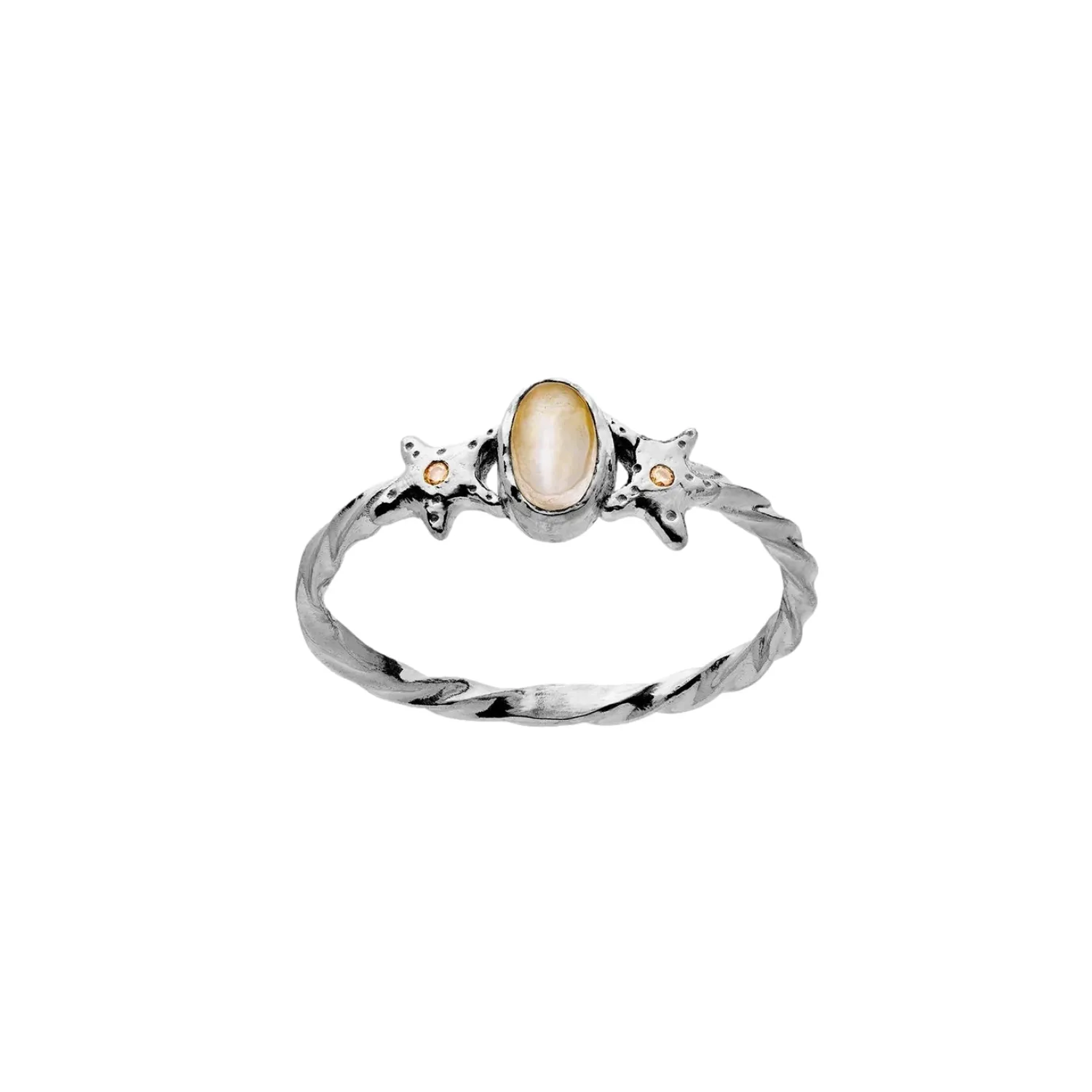 Med et bånd buet som havbunnen, små sjøstjerner utsmykket med blinkende zirkoner, og en fristende regnbuemånestein, representerer Ula ringen alle edelstenene som gjemmer seg i havet.