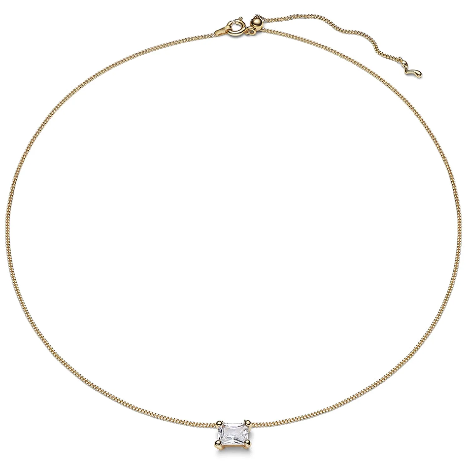 Smalt halskjede med justerbarlengde. og en diamantformet zirkoniastein.