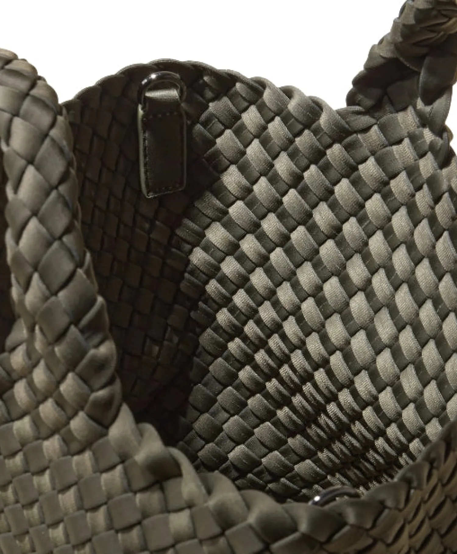 Strikket totebag veske med skulderreim. Liten pung med glidelås følger med.
