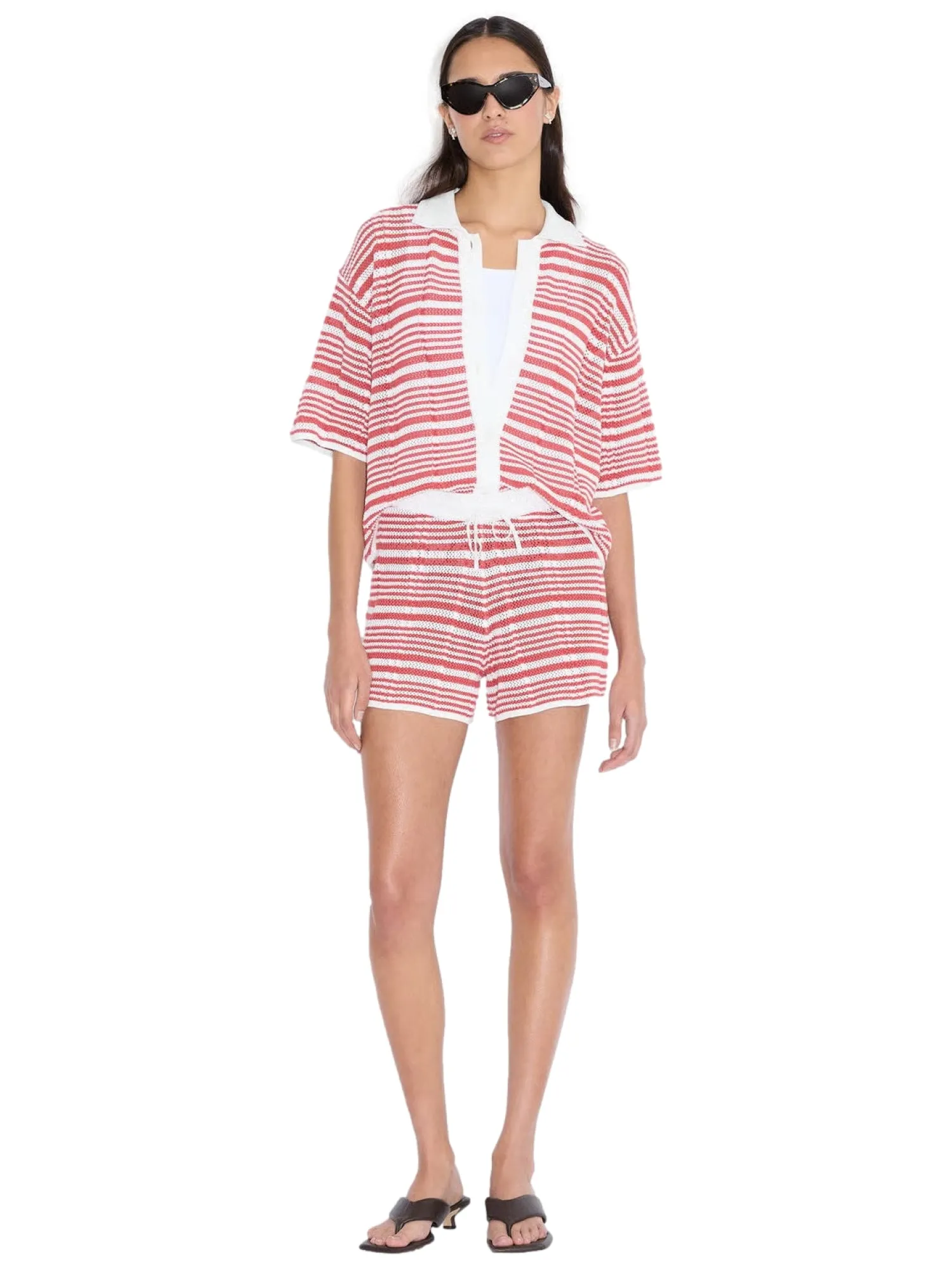 Kelp Striped-shortsen er laget av ren økologisk bomull i heklet strikk. De har en avslappet passform og snøring i midjen, og de kan styles med den matchende Kelp Striped-skjorten.