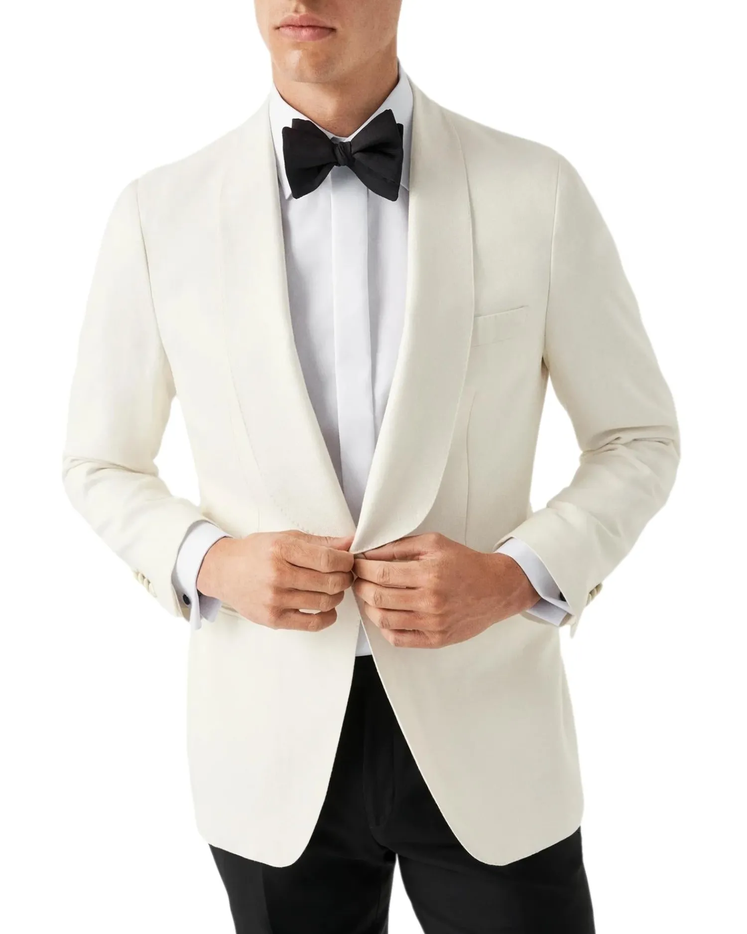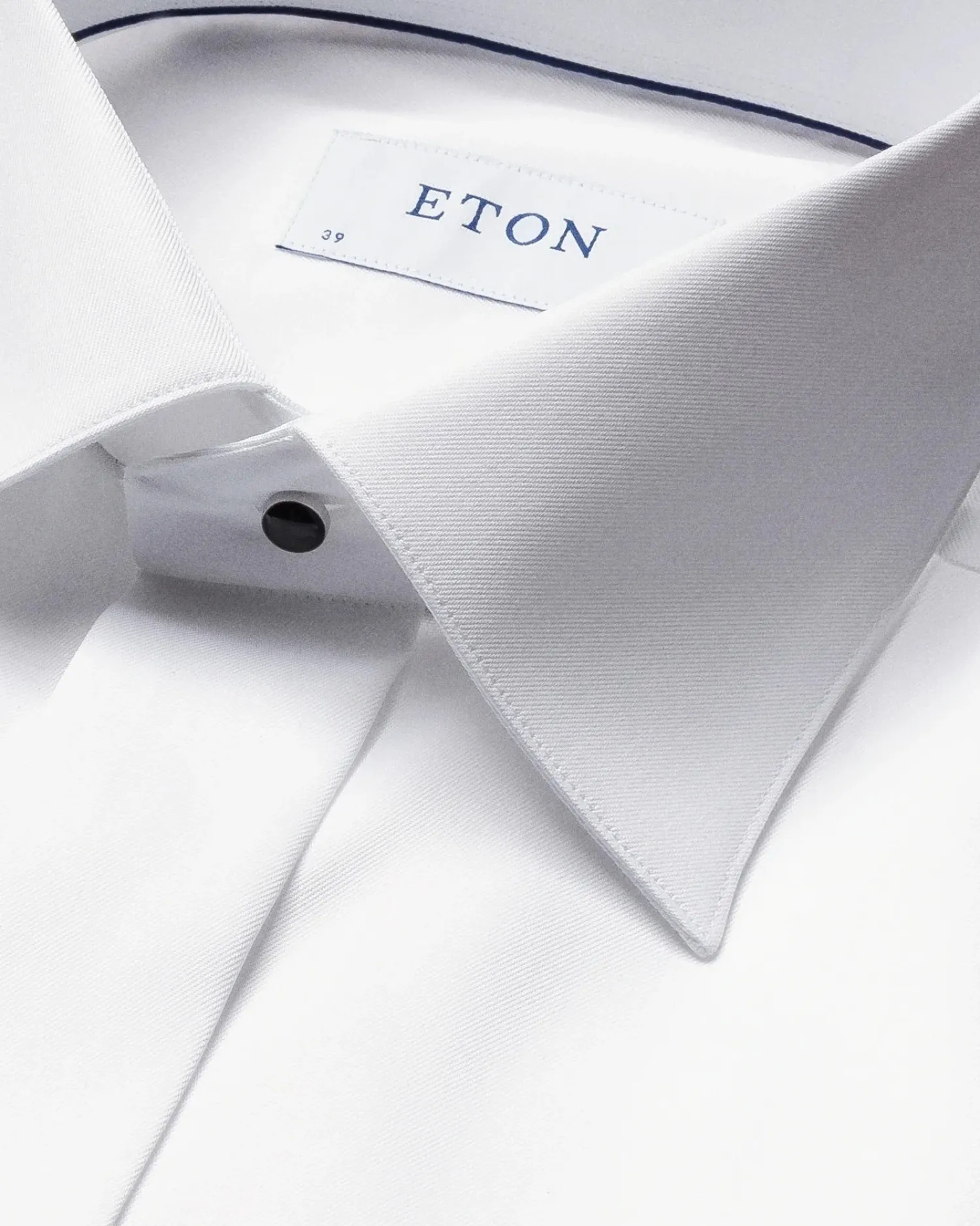 Skjult knappestilling og fransk dobbelmansjett. Cut away krage.