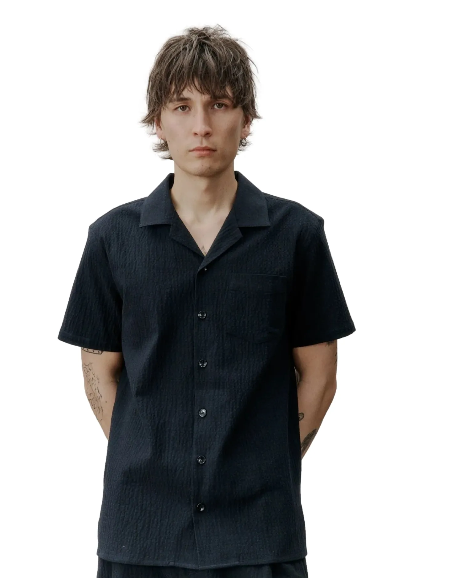 Kortermet skjorte med bowlingkrage og brystlomme.
