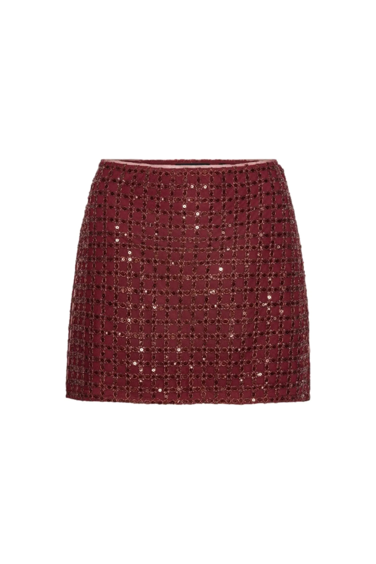 Beaded Mini Skirt Bordeaux har en strukturert passform og et mini-snitt. Stoffet har et heldekkende perlemønster. Kan kombineres med Beaded Oversized Top Bordeaux for et matchende sett.