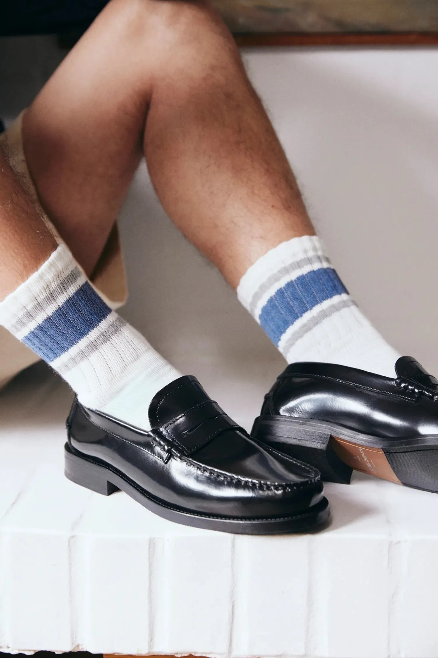Miles Penny Loafer er en loafer av førsteklasses kvalitet. Laget med håndsydd moc toe-detalj og en tunith yttersåle med en gummiert frontdel for å sikre et godt grep. Loaferen kommer i førsteklasses polido-skinn – alt perfekt for enten en festlig look eller hverdagsgarderoben.