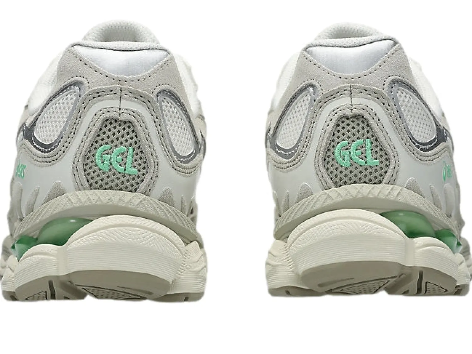 GEL-NYC-joggeskoen henter inspirasjon både fra historiske og moderne ytelsessko. Skoens overdel refererer til GEL-NIMBUS 3-skoen fra starten på 2000-tallet og blander inn ulike utsmykninger fra MC-PLUS V-designet. Konstruksjonen danner en kontrast til den retroinspirerte overdelen ved å ta i bruk systemet til GEL-CUMULUS 16-skoen. En kombinasjon av lettvektig skum og GEL-teknologi gir midtsålen avansert støtte under foten.