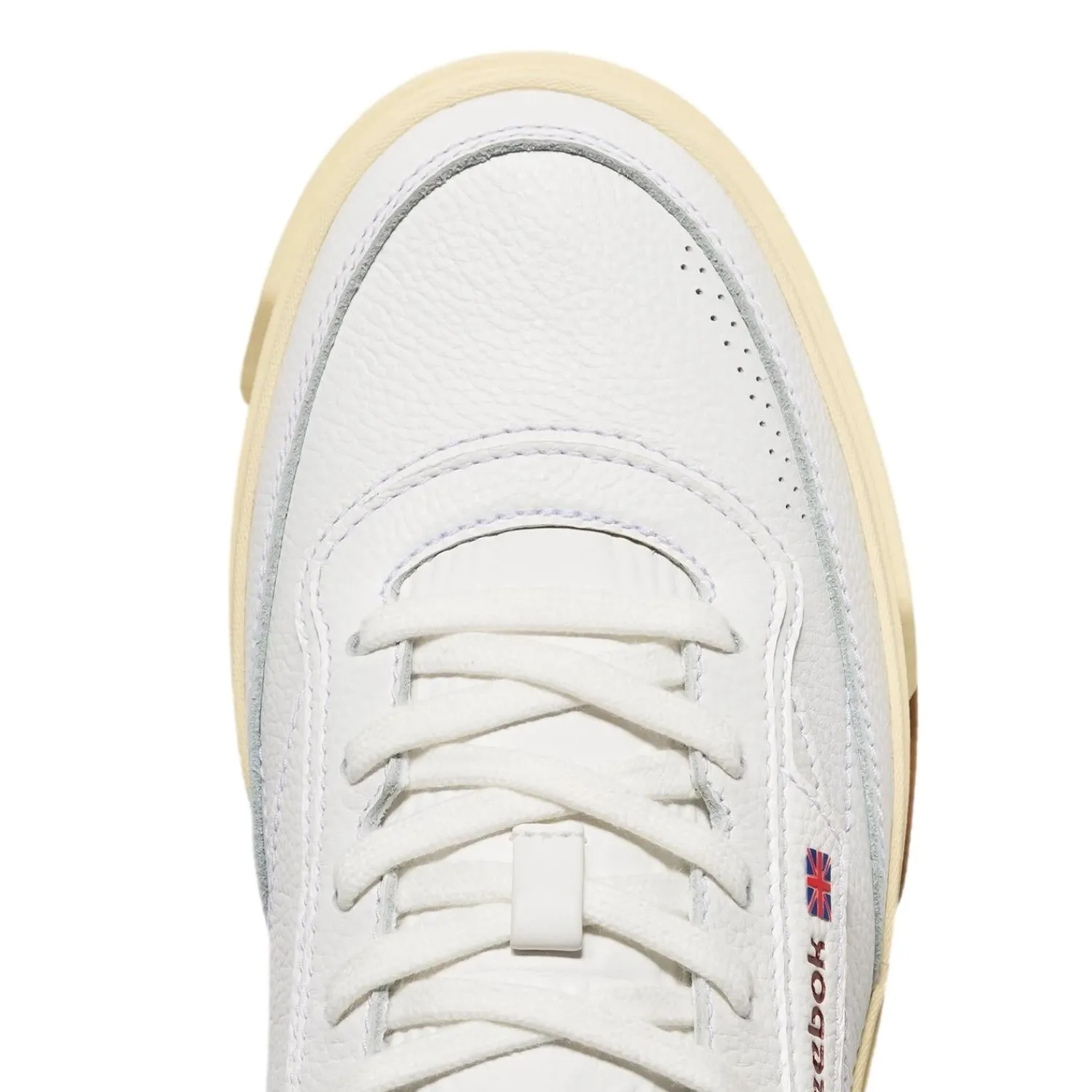 Club C LTD er en moderne versjon av den vintage tennis-inspirerte joggeskoen fra 1985. Denne lærversjonen er detaljert med røde detaljer, mens sålen strekker seg foran med en karakteristisk rillet støtfanger. Men det er ikke alle endringer: kjennetegnselementer, som retrologoene, forblir.