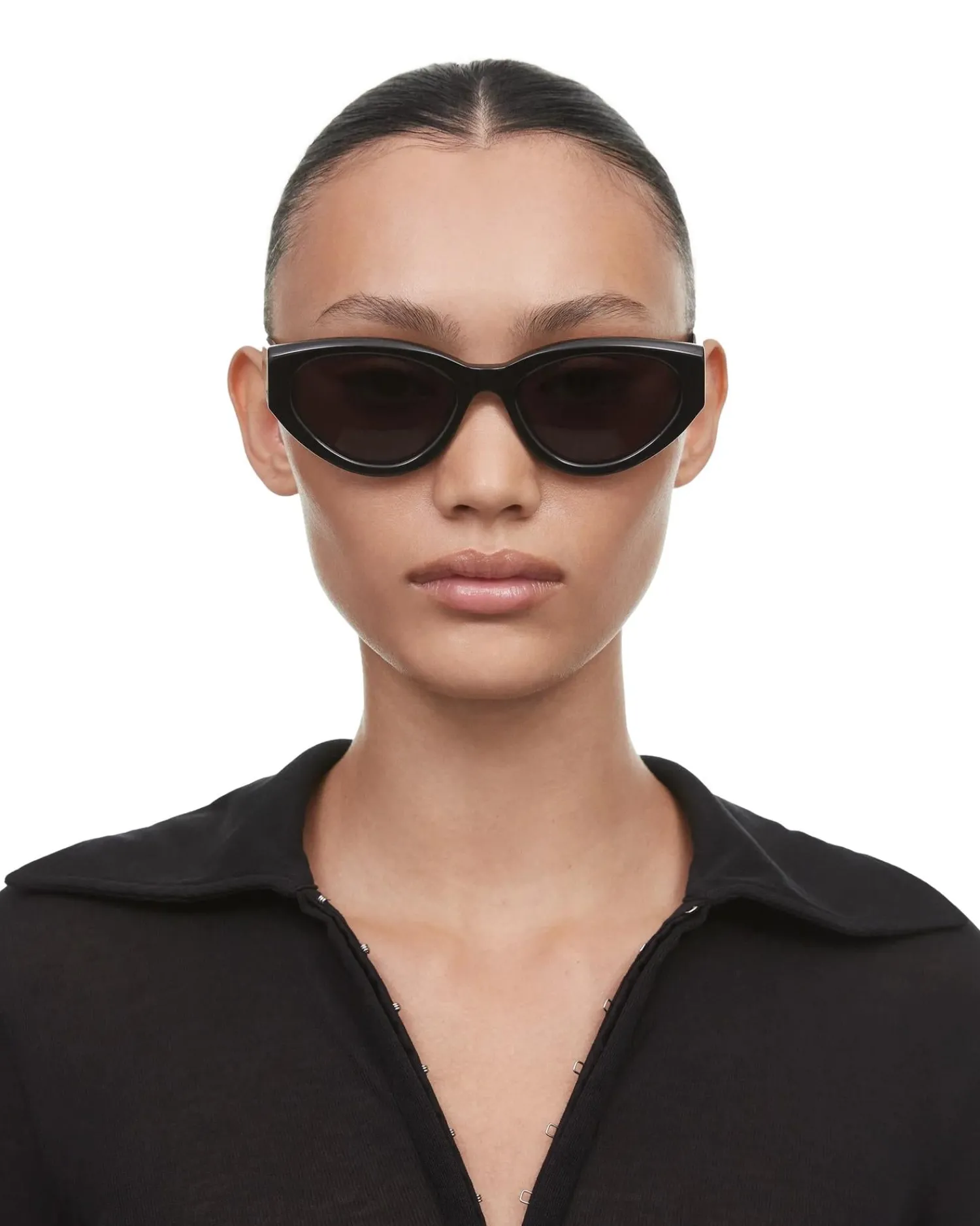 06 er en moderne katteøye med firkantede vinger. Fasede kutt gir dybde til den buede silhuetten, mens lineære stenger og vinklede buer gir intriger. Utstyrt med mykt avrundede UV-beskyttende CR39-linser.