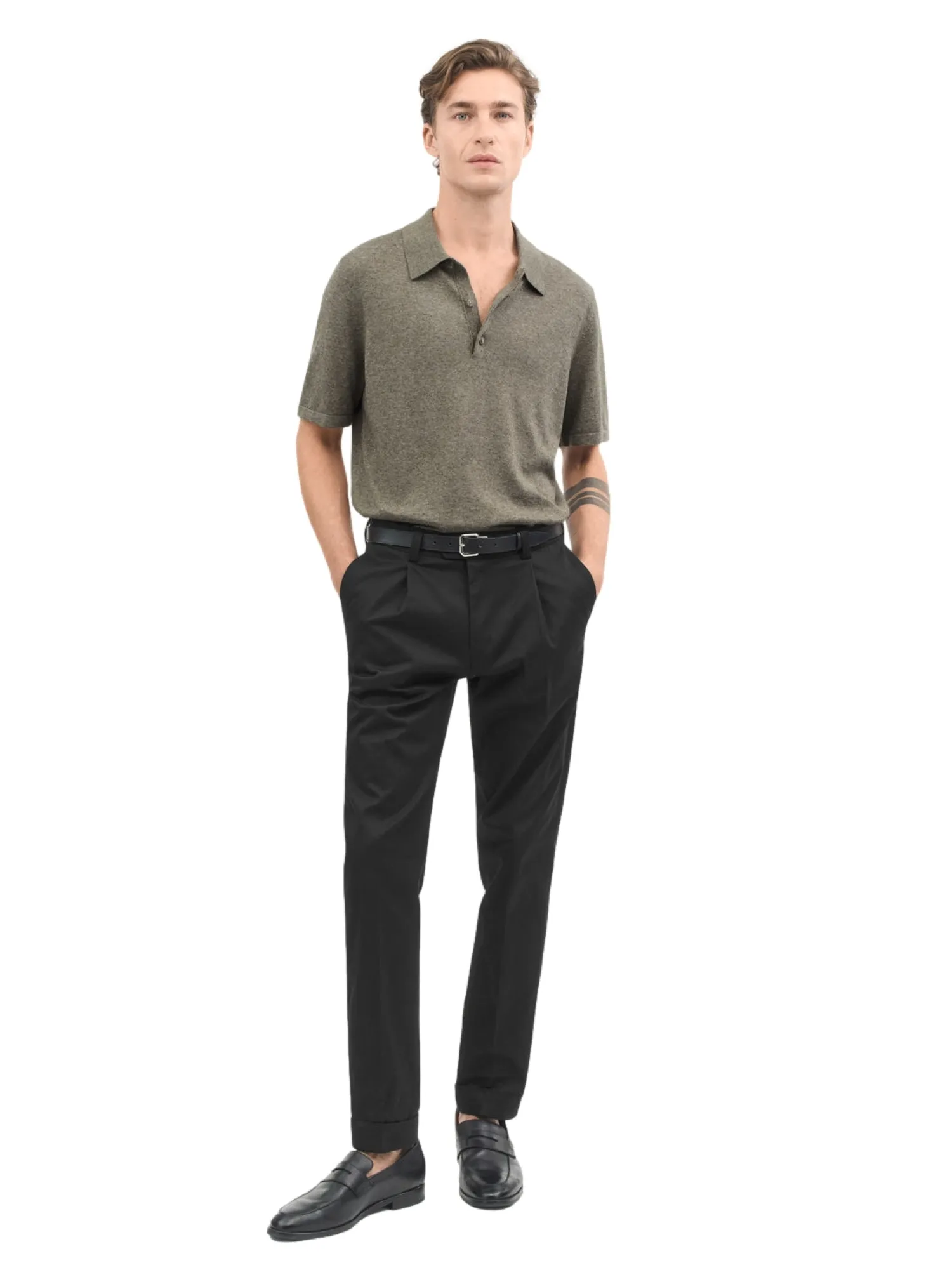 Poloskjorte i linkvalitet med knapper. Slim fit passform.