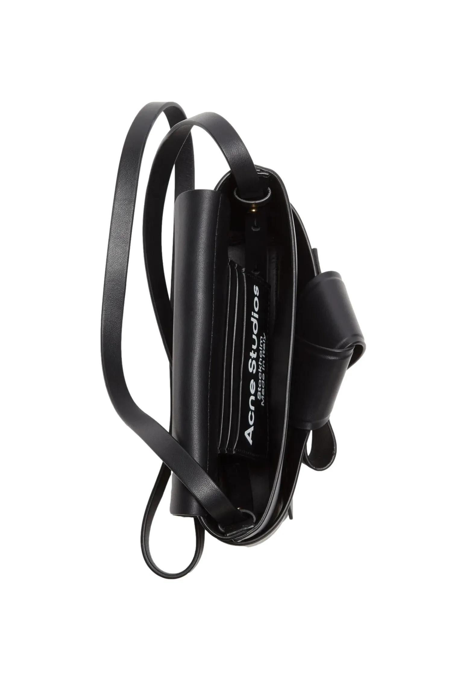 Mini crossbody-veske laget av glatt skinn utsmykket med en vridd musubi-knute foran, inspirert av de tradisjonelle japanske obi-sashene. Komplett med innvendige kortlommer og en justerbar crossbody-stropp.