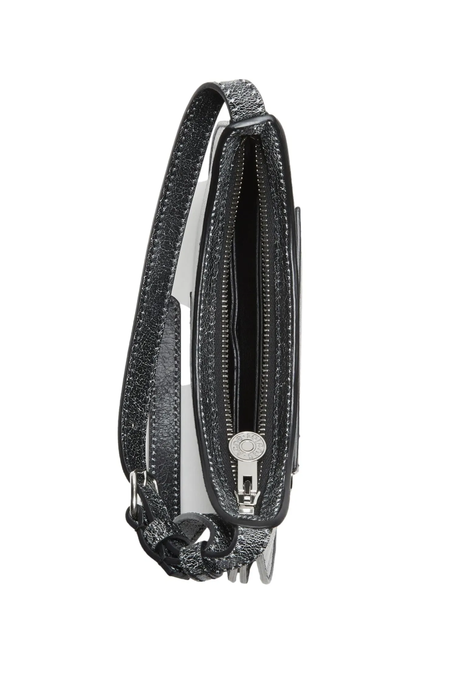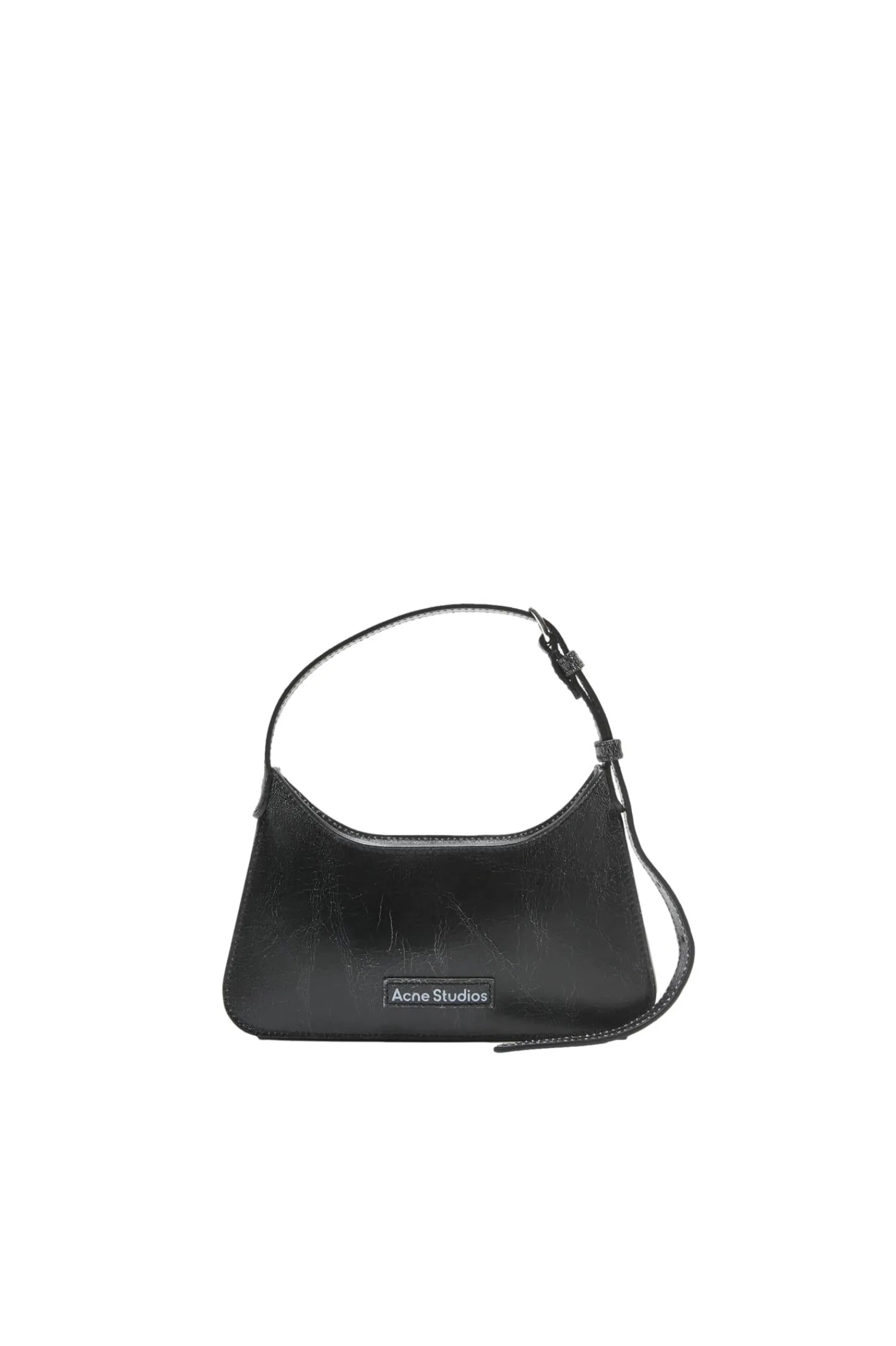 Platt mikroskulderveske har en flat minimalistisk silhuett, en mykt buet topp med strukturerte trekkspillfolder på siden og bunnen. Laget av skinn med en krakelert finish. Komplett med en Acne Studios-logo i skinn foran og et dekorativt avtagbart speil på baksiden.