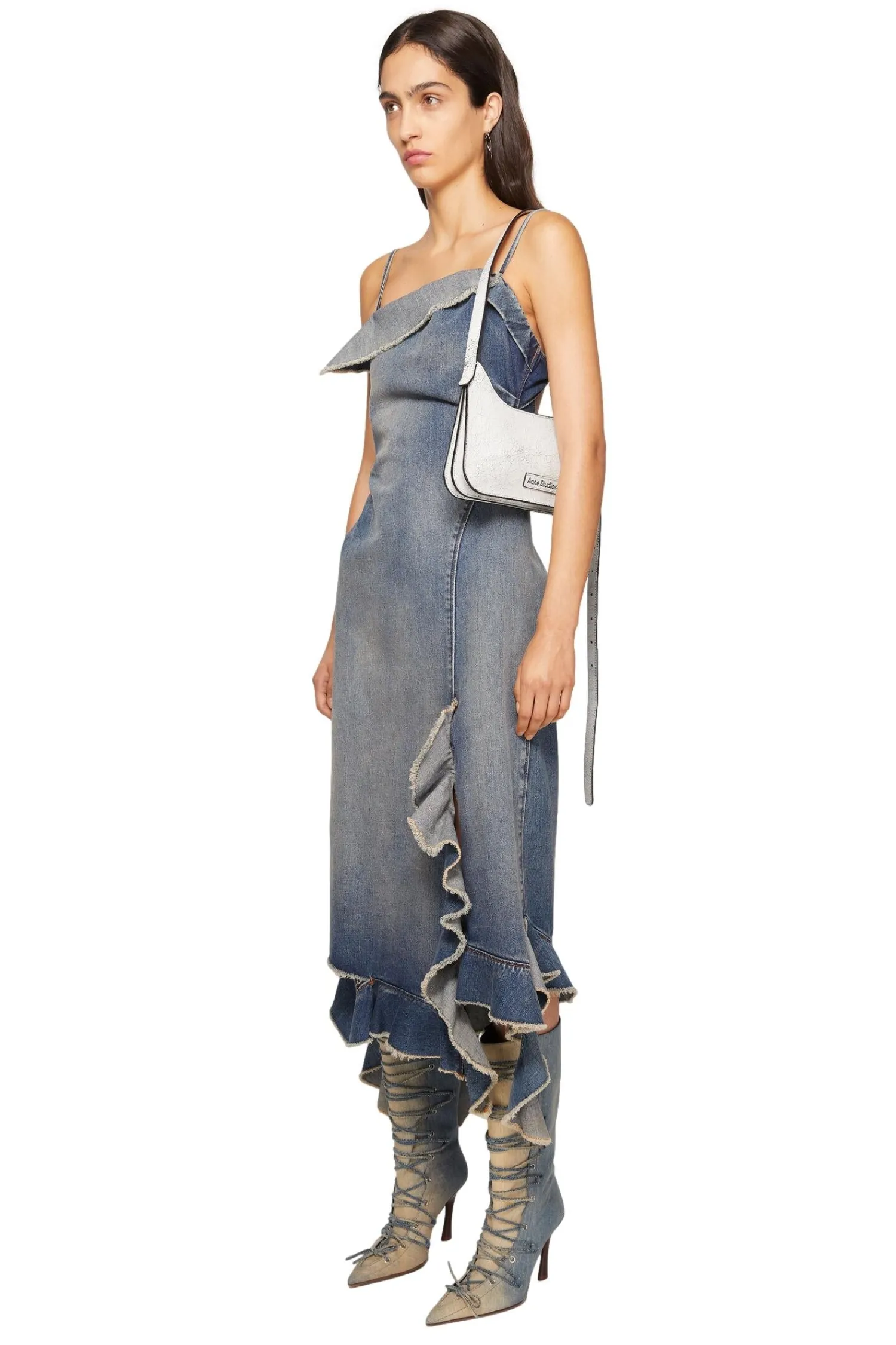 Platt miniskulderveske har en flat minimalistisk silhuett, en mykt buet topp med strukturerte trekkspillfolder på siden og bunnen. Laget av skinn med en krakelert finish. Komplett med en Acne Studios-logo i skinn foran og et dekorativt avtagbart speil på baksiden.