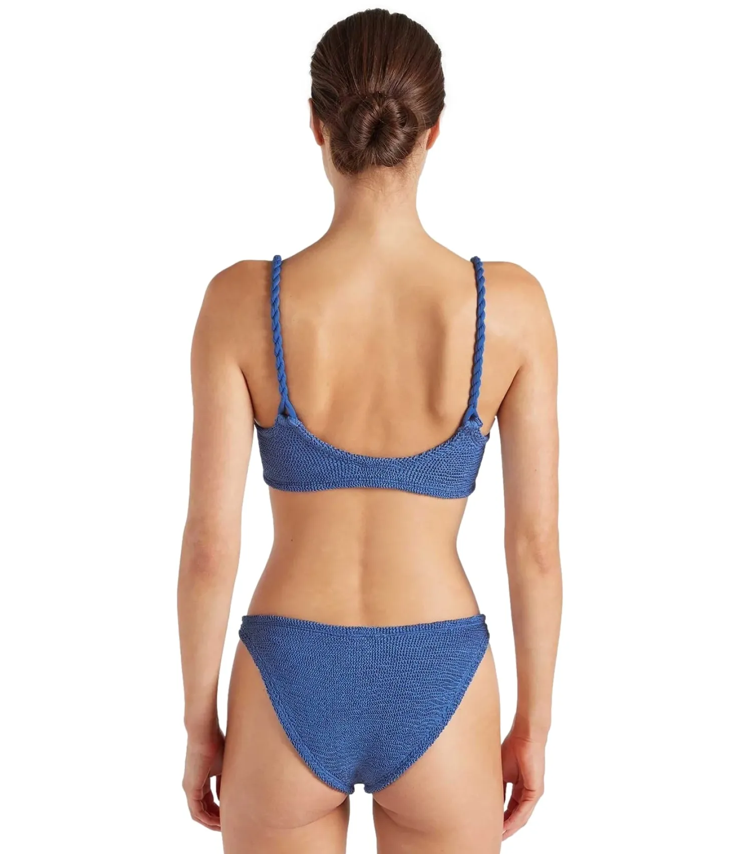 Phoebe bikini i fargen metallic denim fra Hunza G. Denne atletisk bikini er laget for de som ønsker et behagelig, men lekkert badetøy.