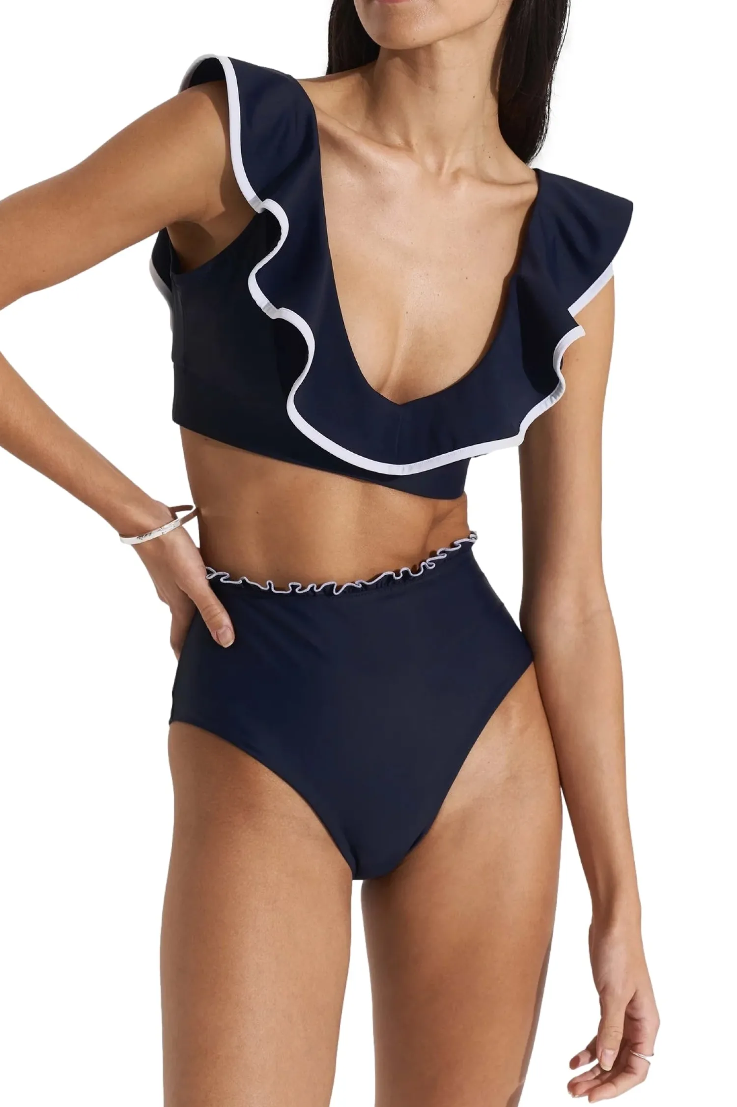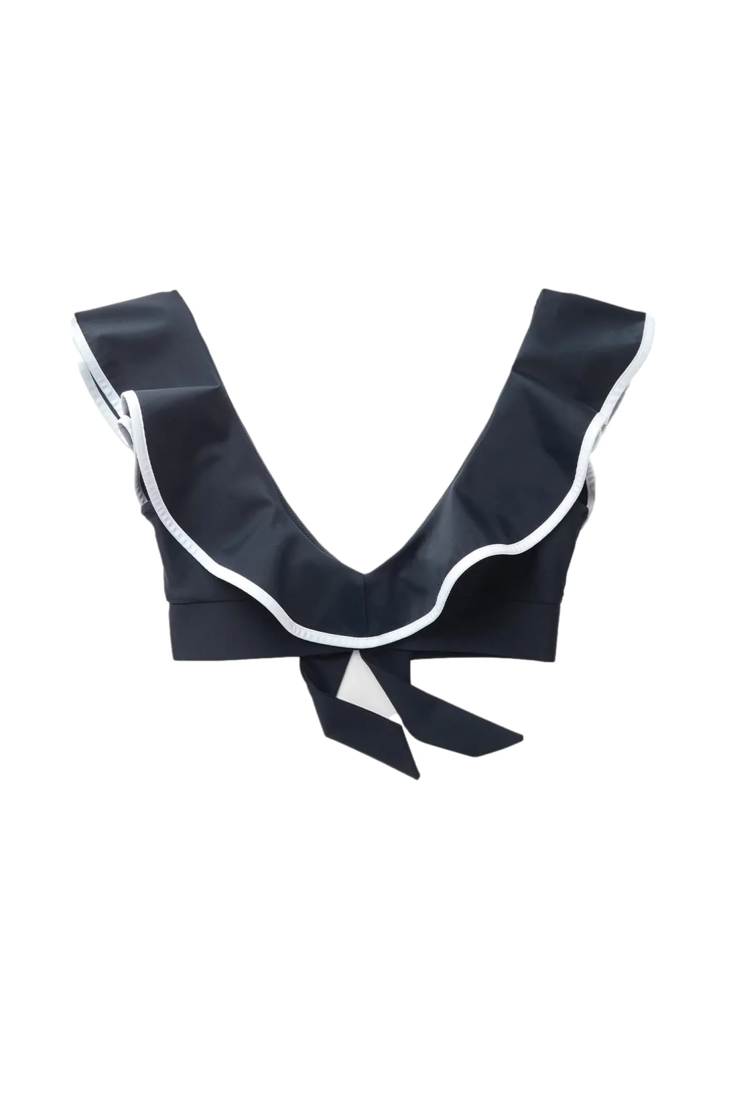 Bikinitopp med frynsete kanter og knyting i front.
