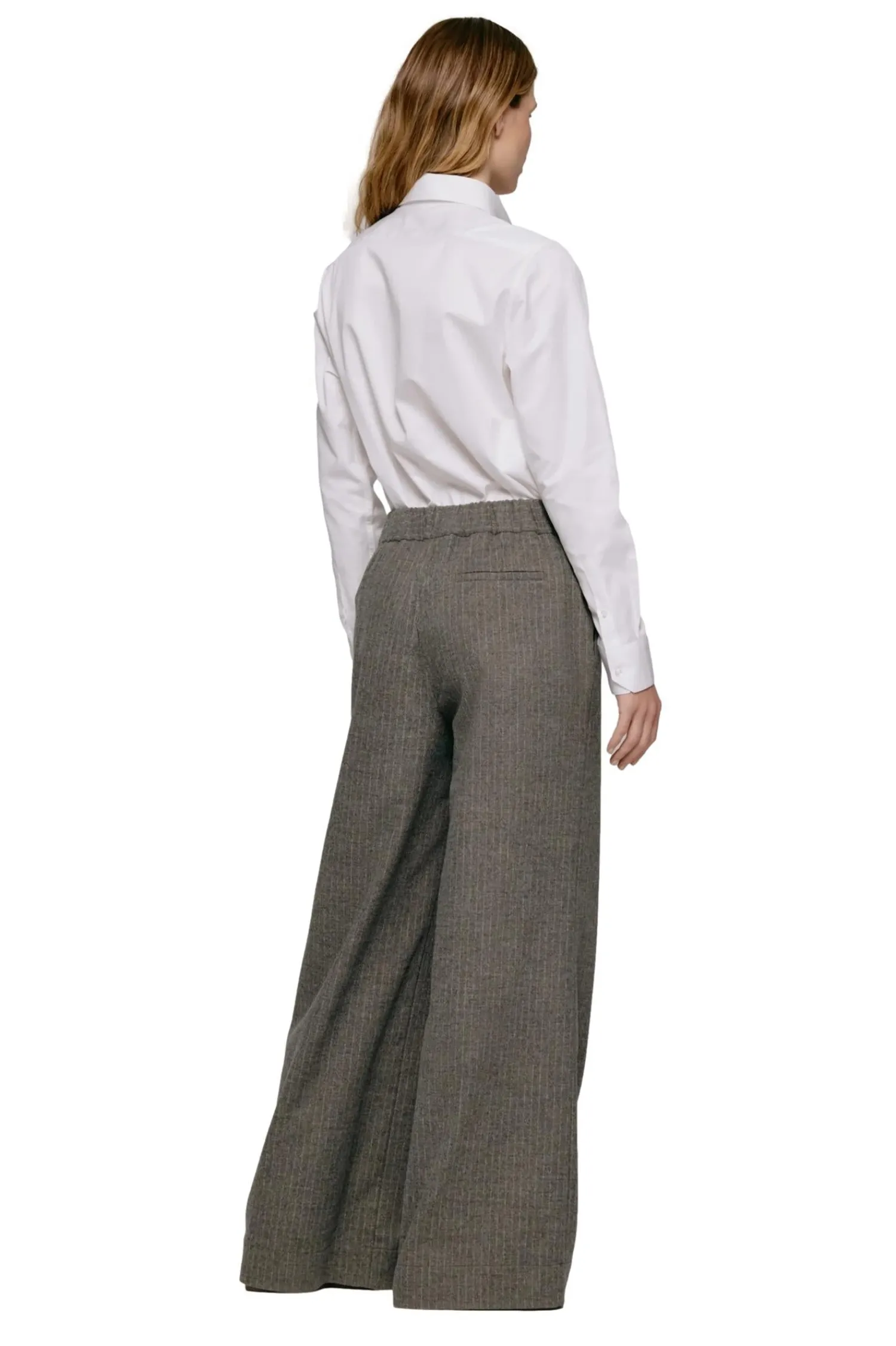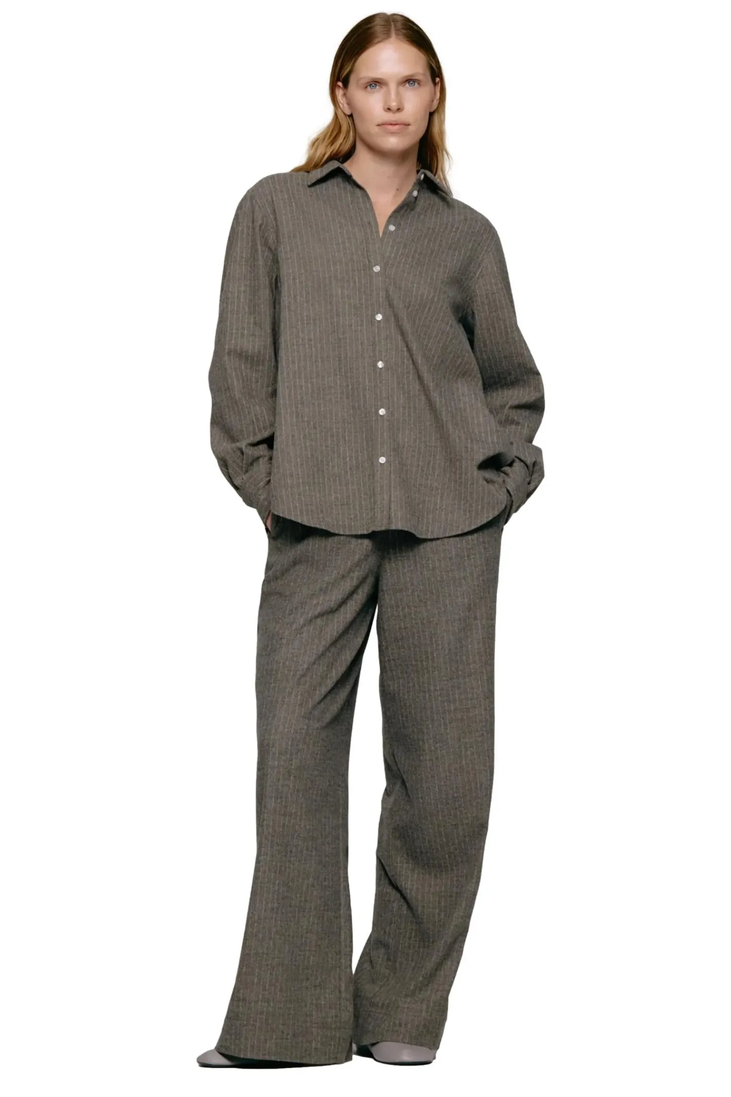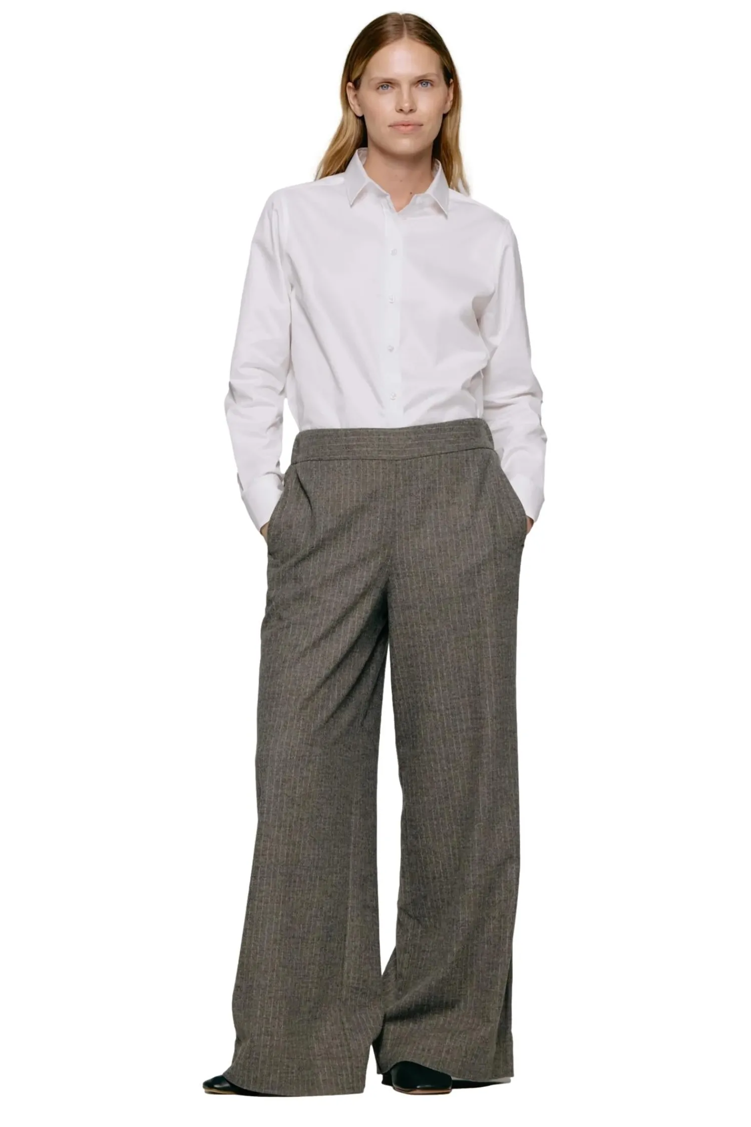 Et moderne must-haveplagg med tidløs appell – Mathilde-buksen er laget av strukturert ull med vide, draperte ben og ren linning. Den overdrevne silhuetten gir avslappethet og tilstedeværelse, perfekt for å kle seg opp eller ned.