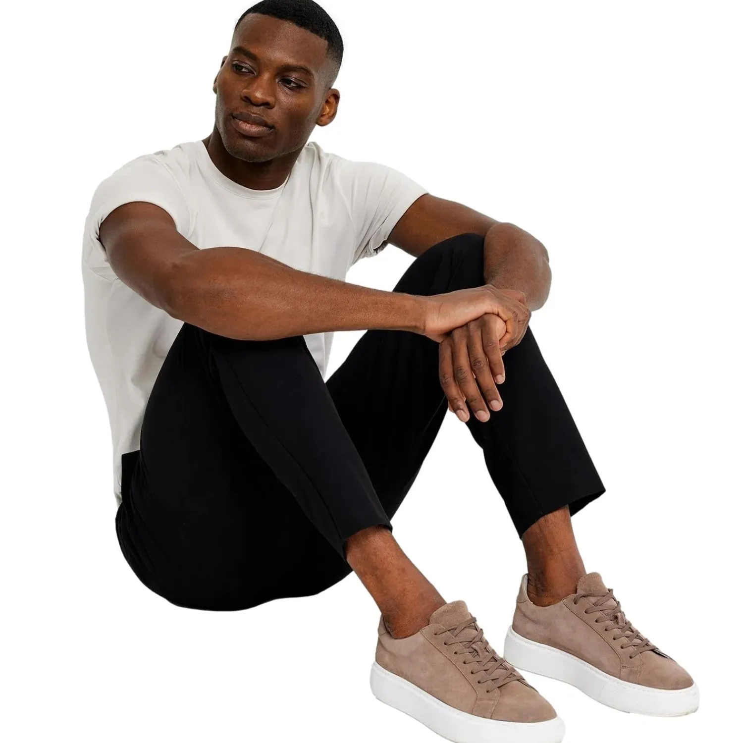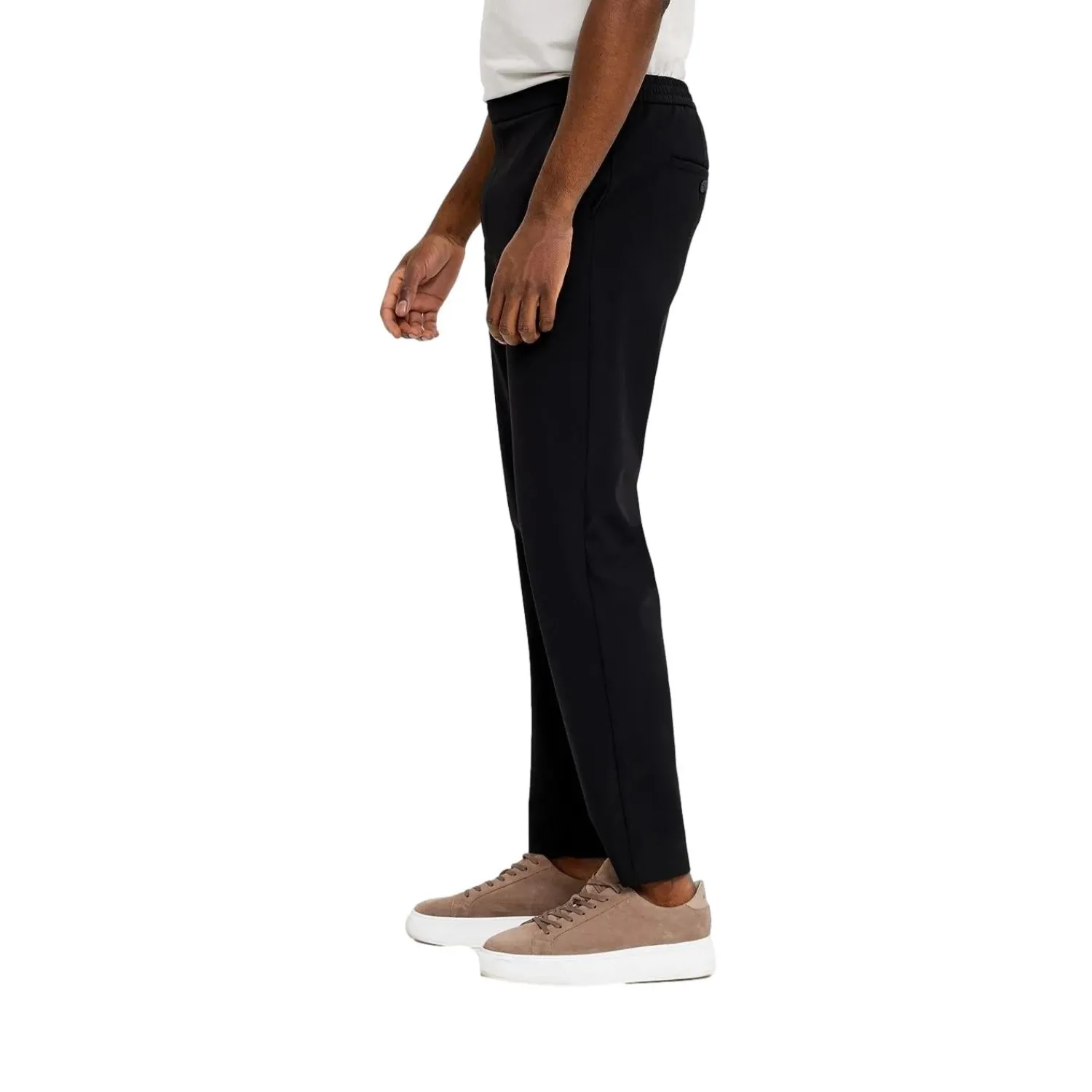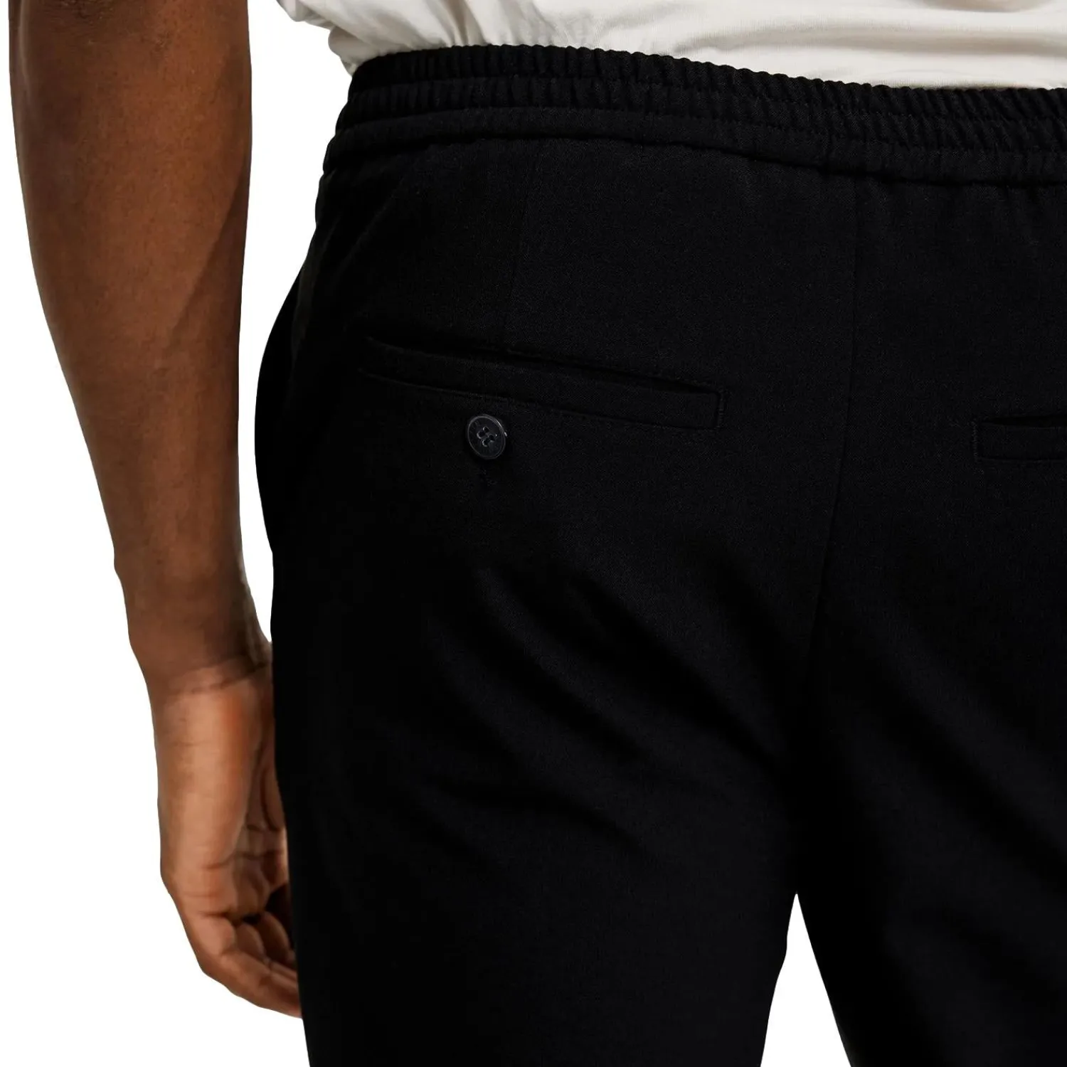 Bukser i rett passform med middels høyde på livet.
