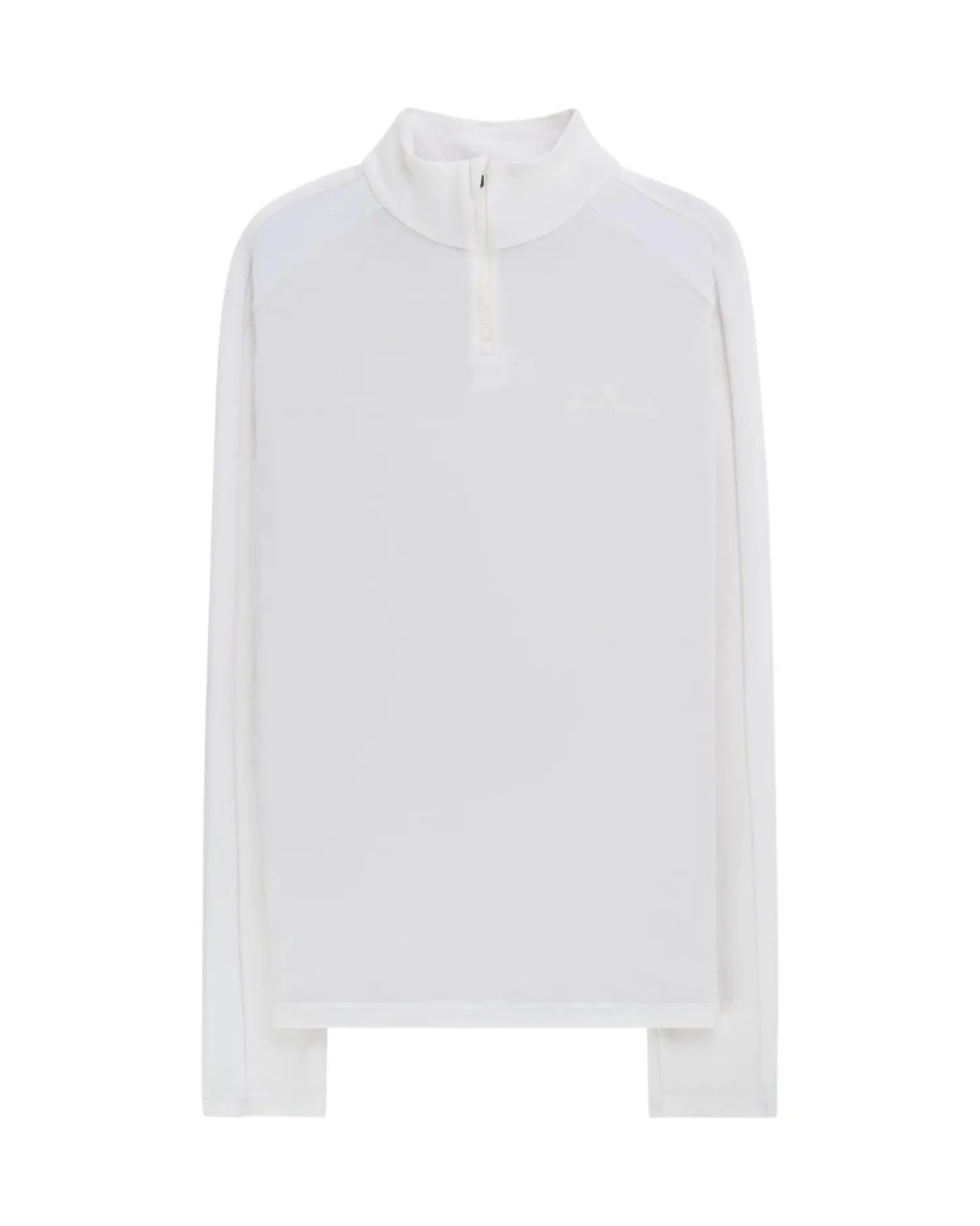 Halv zip i merinoull blandingskvalitet med antibakterielle egenskaper.