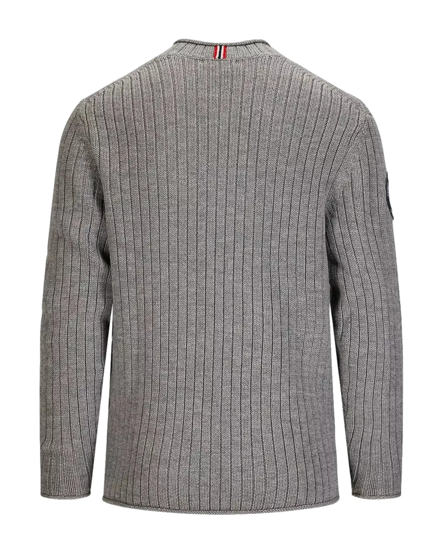 Løst ribbestrikket merinoullgenser med rullehals som er allsidig på tvers av sesonger og aktiviteter.