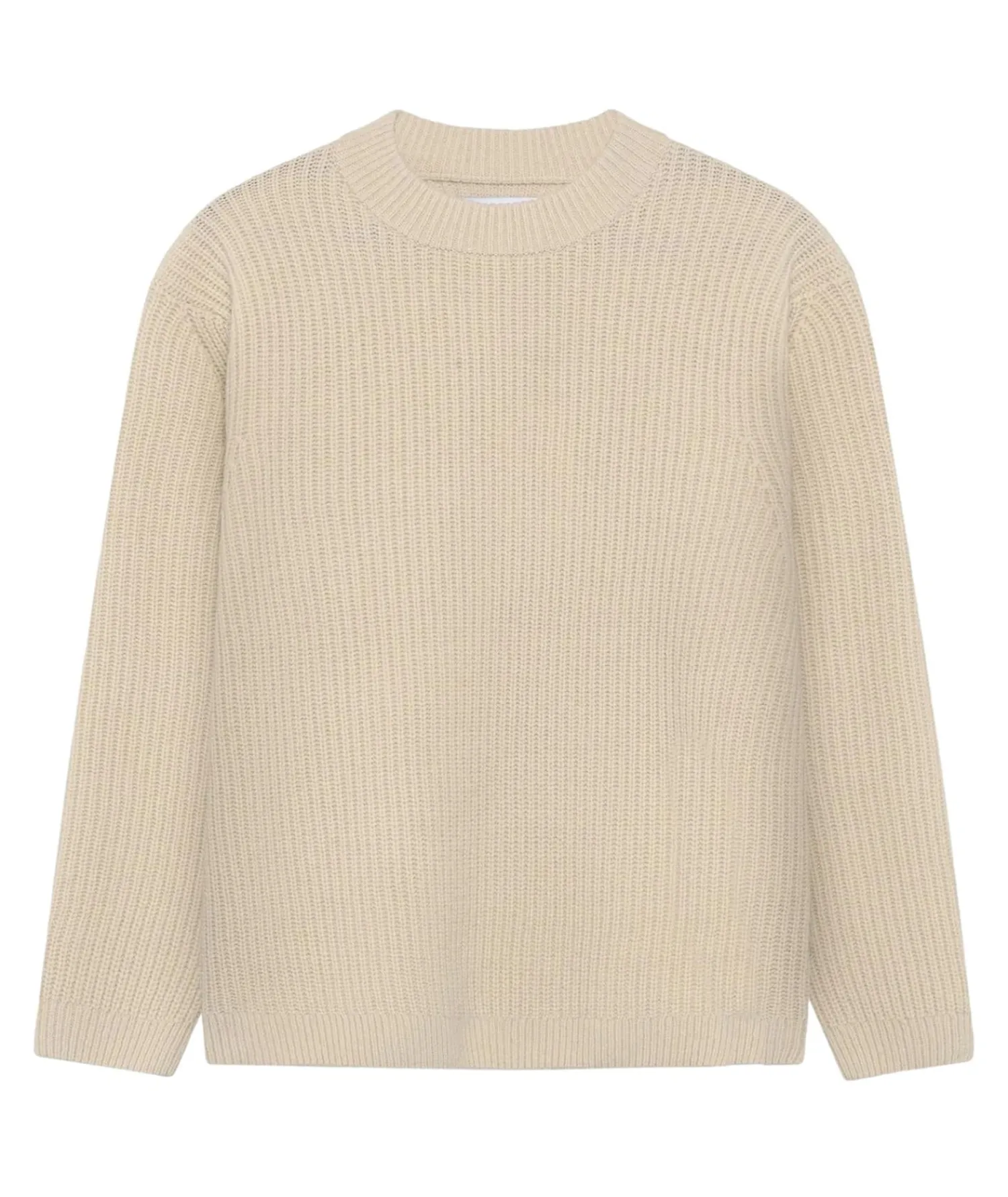 Inspirert av de slitesterke Gansey-genserne som bæres av britiske fiskere, er Boxy Wool Knit en moderne versjon av en genser som tåler enhver storm.