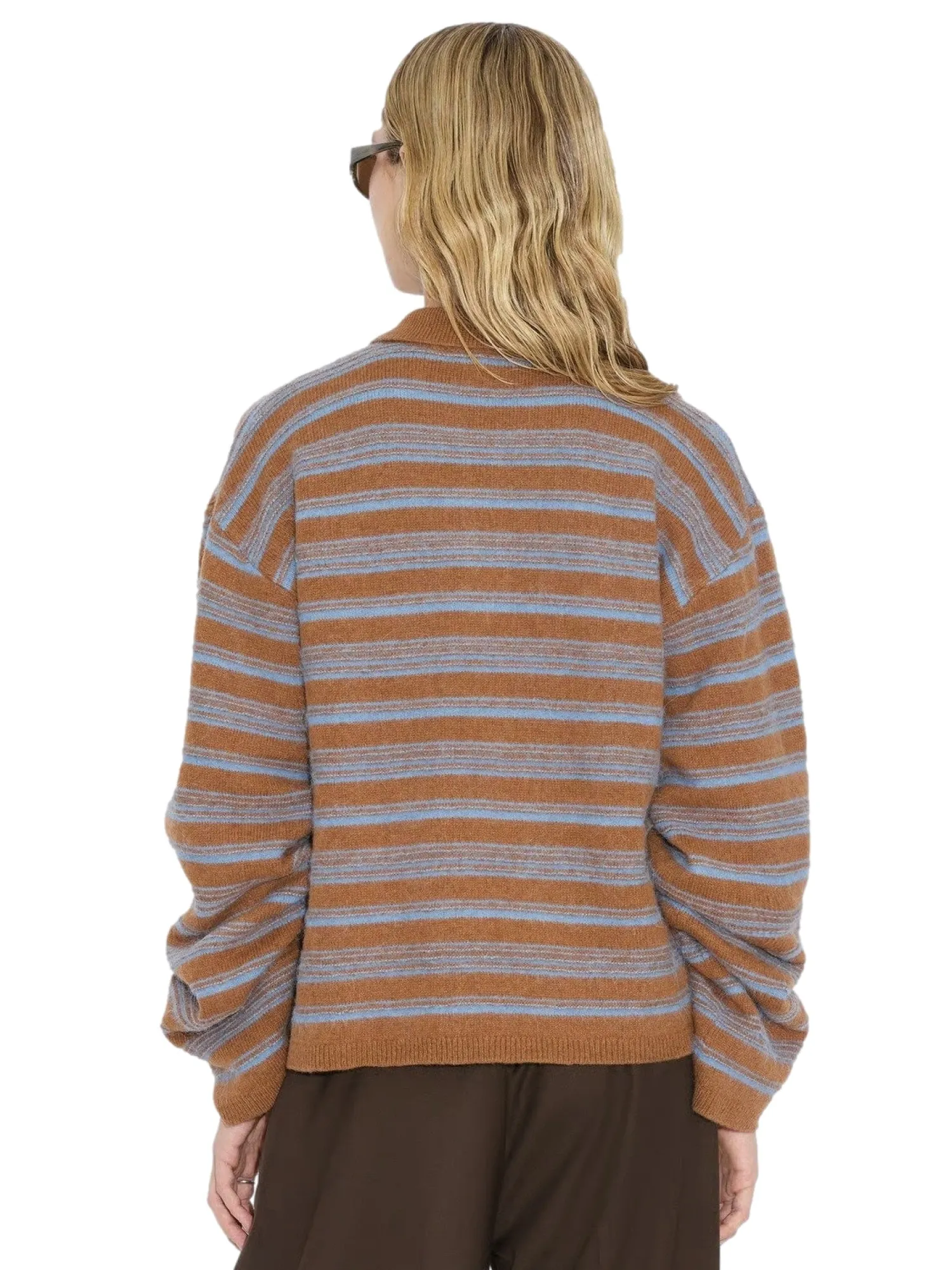 Olivia-ullpoloskjorten er laget av et taktilt stripete strikkemateriale og har en avslappet passform. Den har en knappet polokrage og klokkeformede ermer.