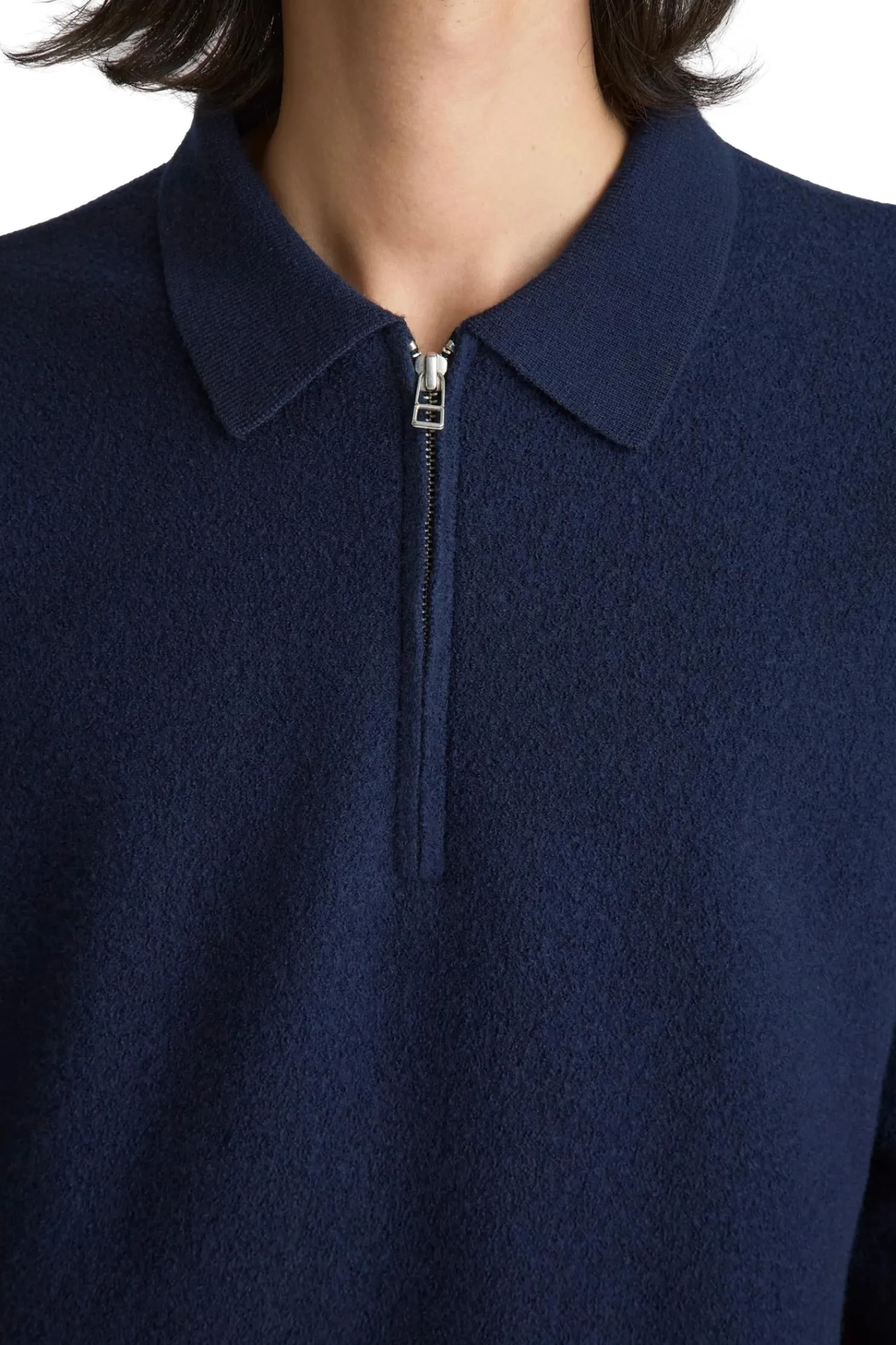 Laget i ren merinoull, kokt for å oppnå en perfekt balanse mellom varme, pusteevne og mykhet. Vekten av den kokte merinoullen gir Kevin-genseren med kvart glidelås et mykt og tungt fall.