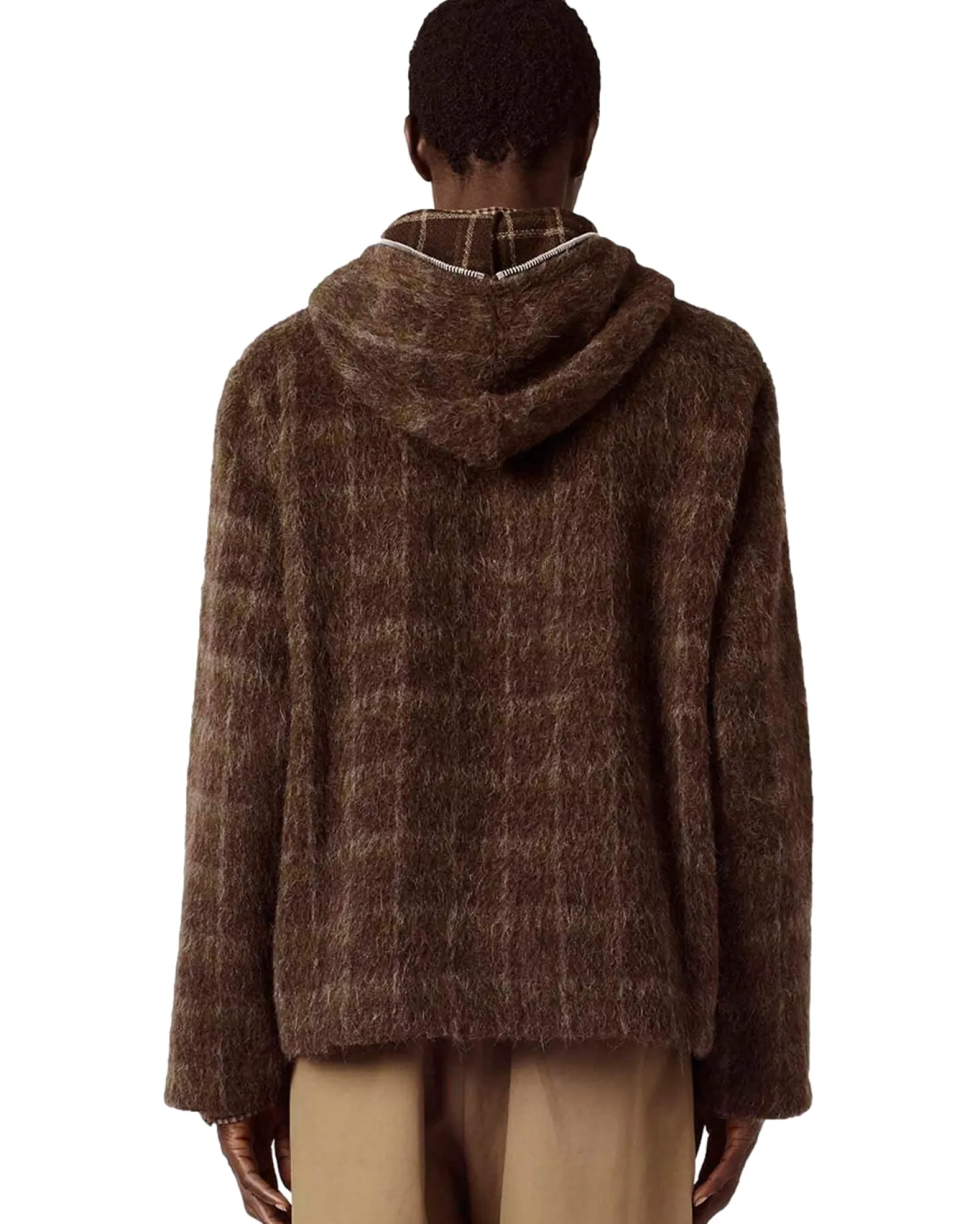 Hoodie med glidelås i mohair tekstur kvalitet.