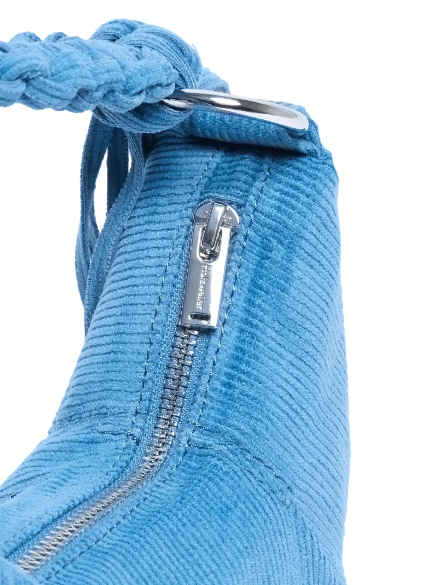 Cocoon Micro-vesken i cordstoff og har en slank design med krøllede detaljer. Den henger fra en flettet stropp som er ferdig med duskkanter.