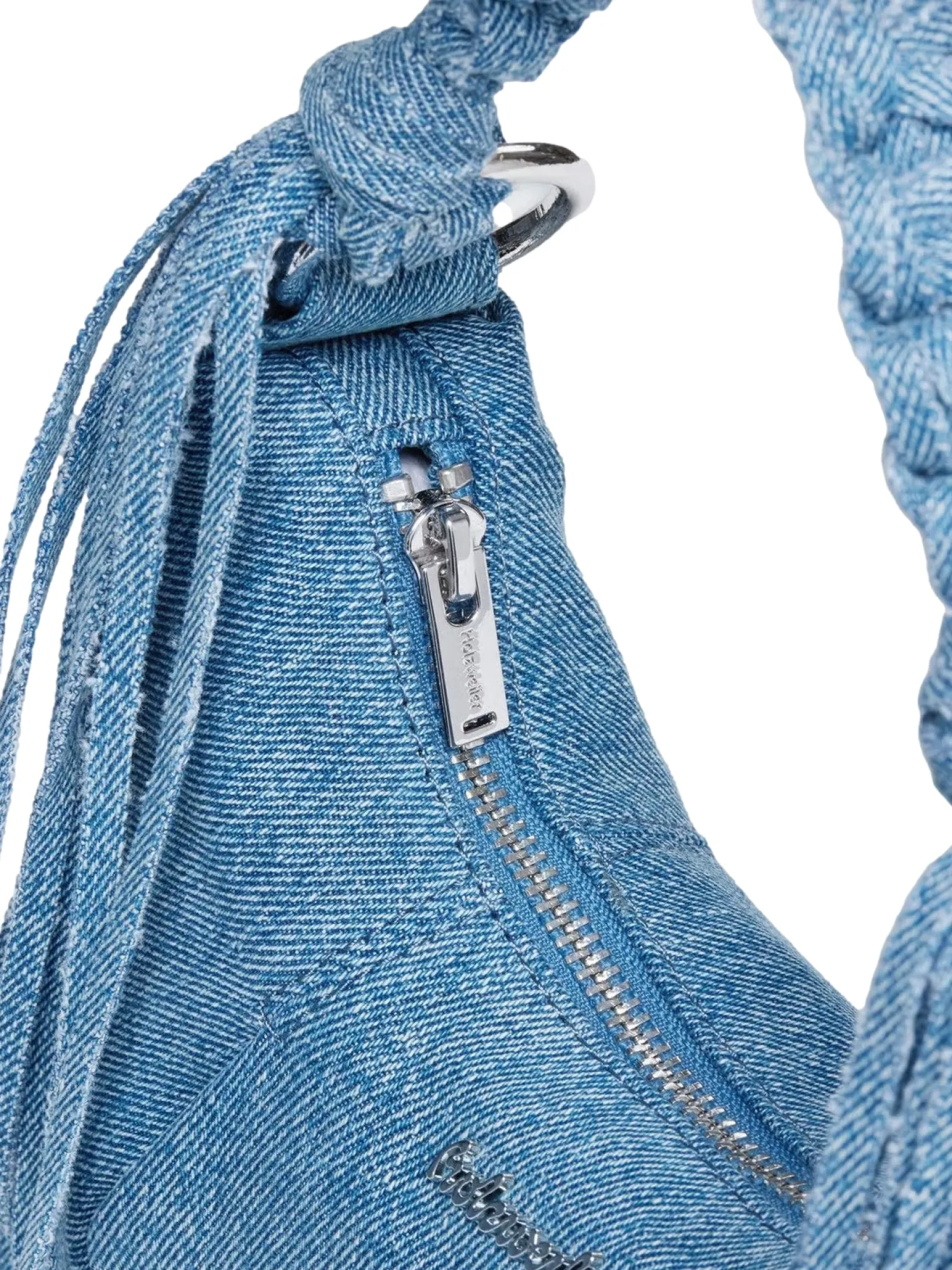 Cocoon Micro-vesken er laget av denim, og har en slank design med krøllede detaljer. Den henger fra en flettet stropp som er ferdig med duskkanter.
