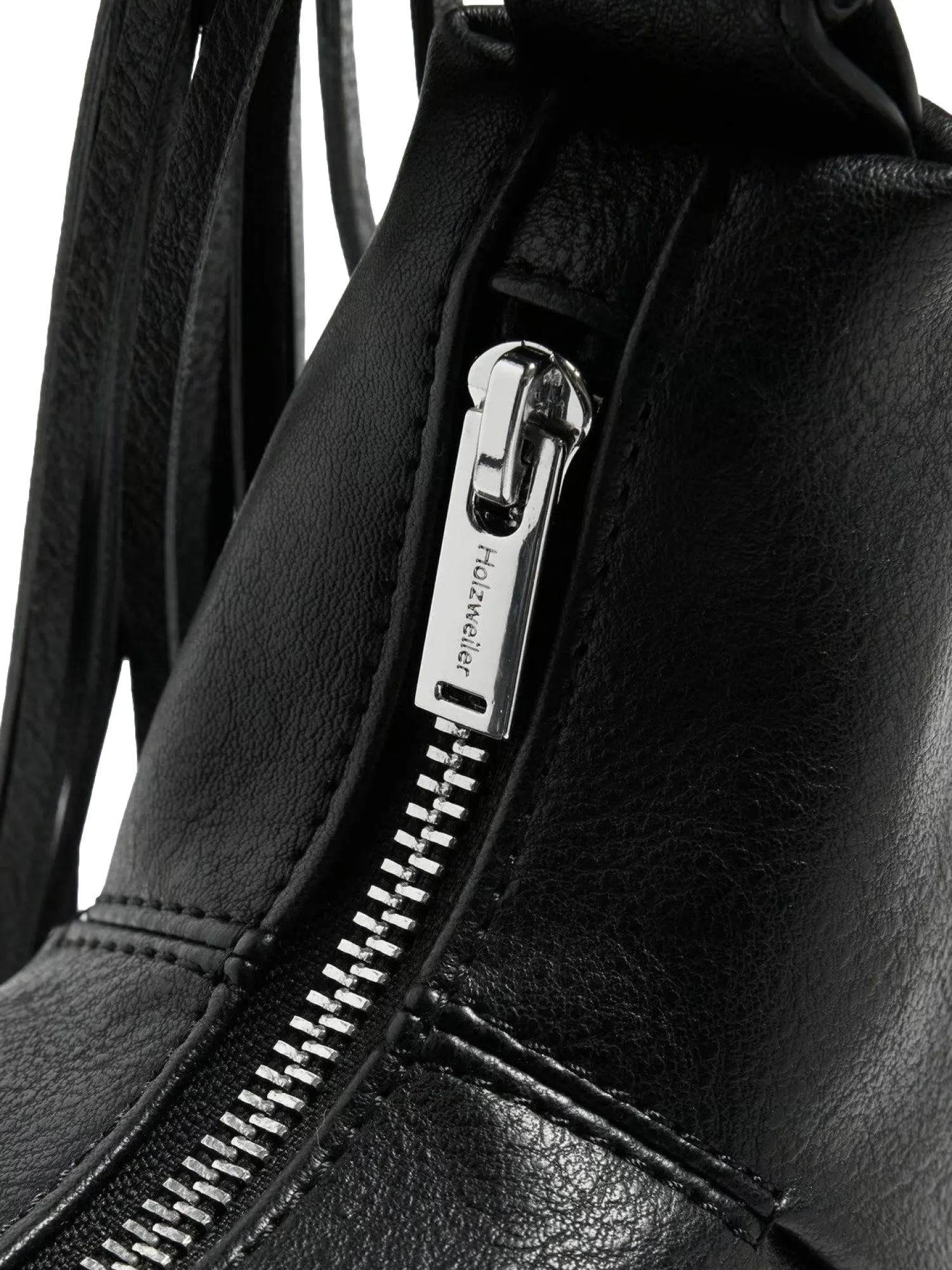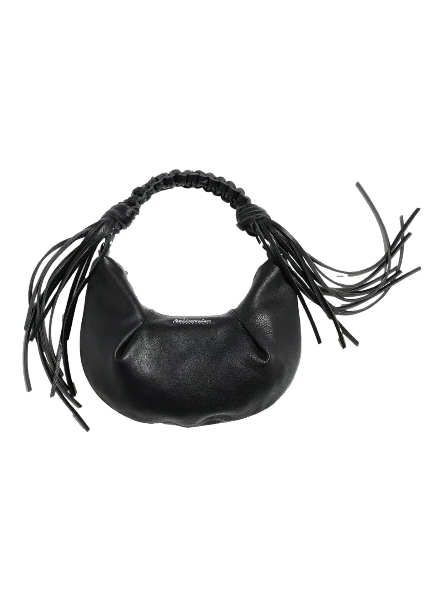 Cocoon Micro-vesken er laget av imitert skinn, og har en slank design med krøllede detaljer. Den henger fra en flettet stropp som er ferdig med duskkanter.