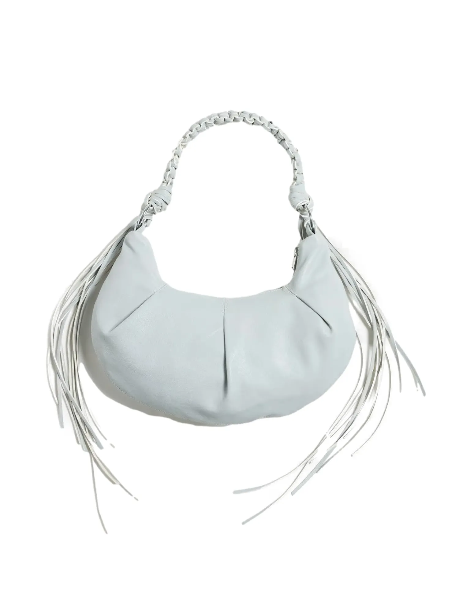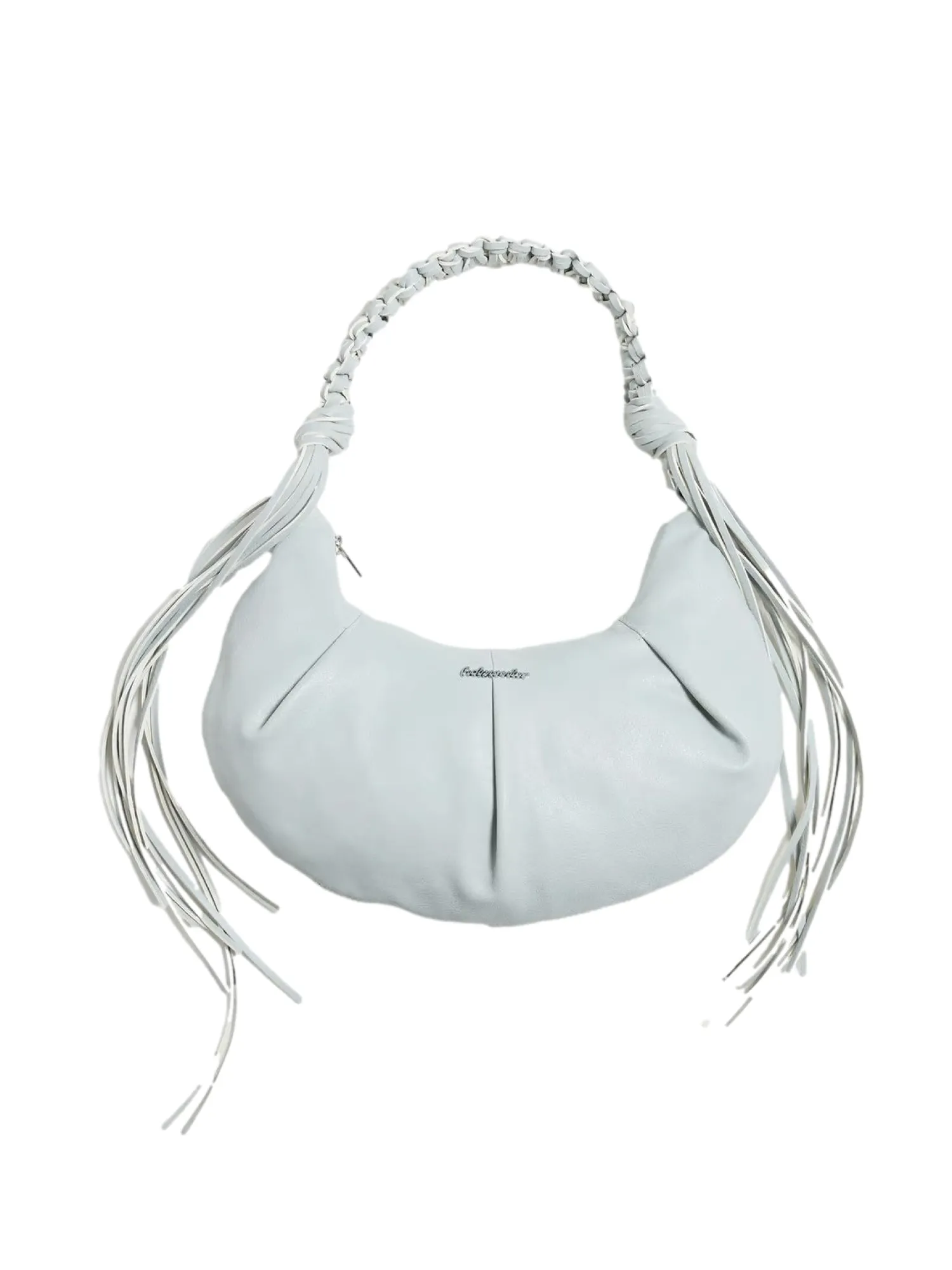 Cocoon Small-vesken er laget av imitert skinn, og har en slank design med krøllede detaljer. Den henger fra en flettet stropp som er ferdig med duskkanter.