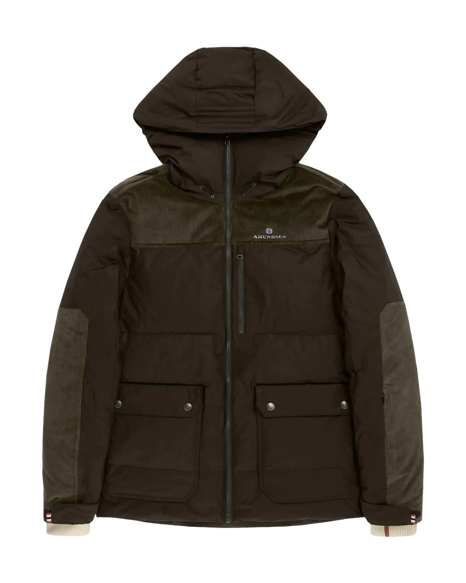 Groomer Jackets består av fransk kordfløyel, Rip-Stop i organisk bomull og gåsedun, og er toppen av vinteryttertøy konstruksjonen. Avsluttet med ullmansjetter og doble håndvarmerlommer, vil denne jakken bestå de mest krevende testene vinteren kan fremtrylle.
