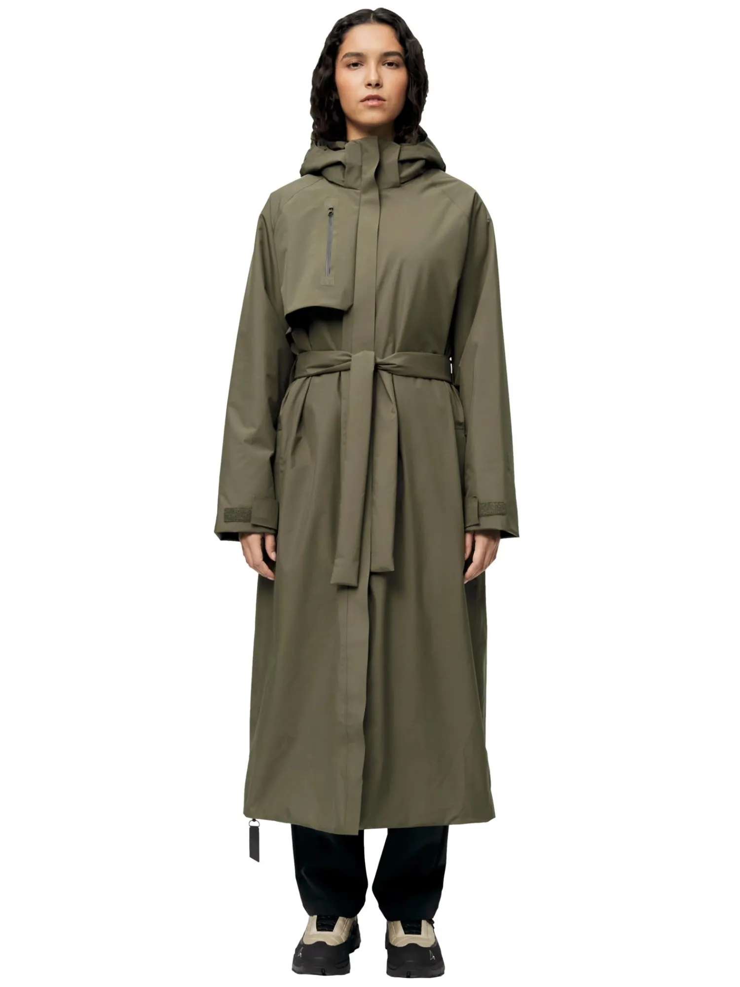 Åse er en isolert versjon av tech-trenchcoaten. Denne damefrakken har et minimalistisk design og høy vanntetthet, noe som gjør det enkelt å se smart ut uansett vær.