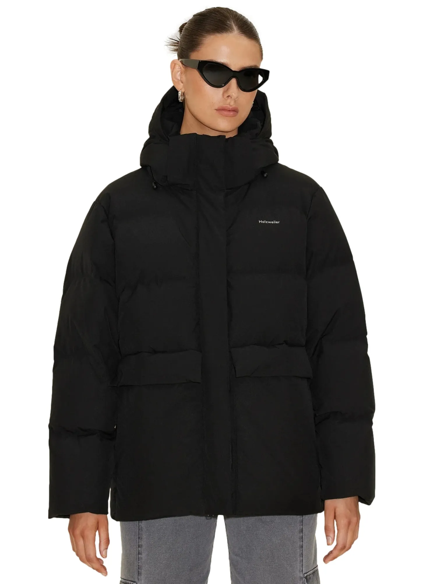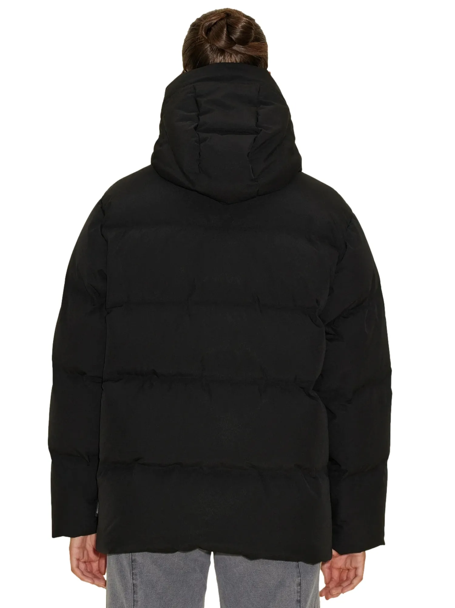 Varm og god dunjakke med liten logo på brystet. Jakken er fylt med dun og fjær som holder deg varm. Laget av 100% resirkulert polyester.