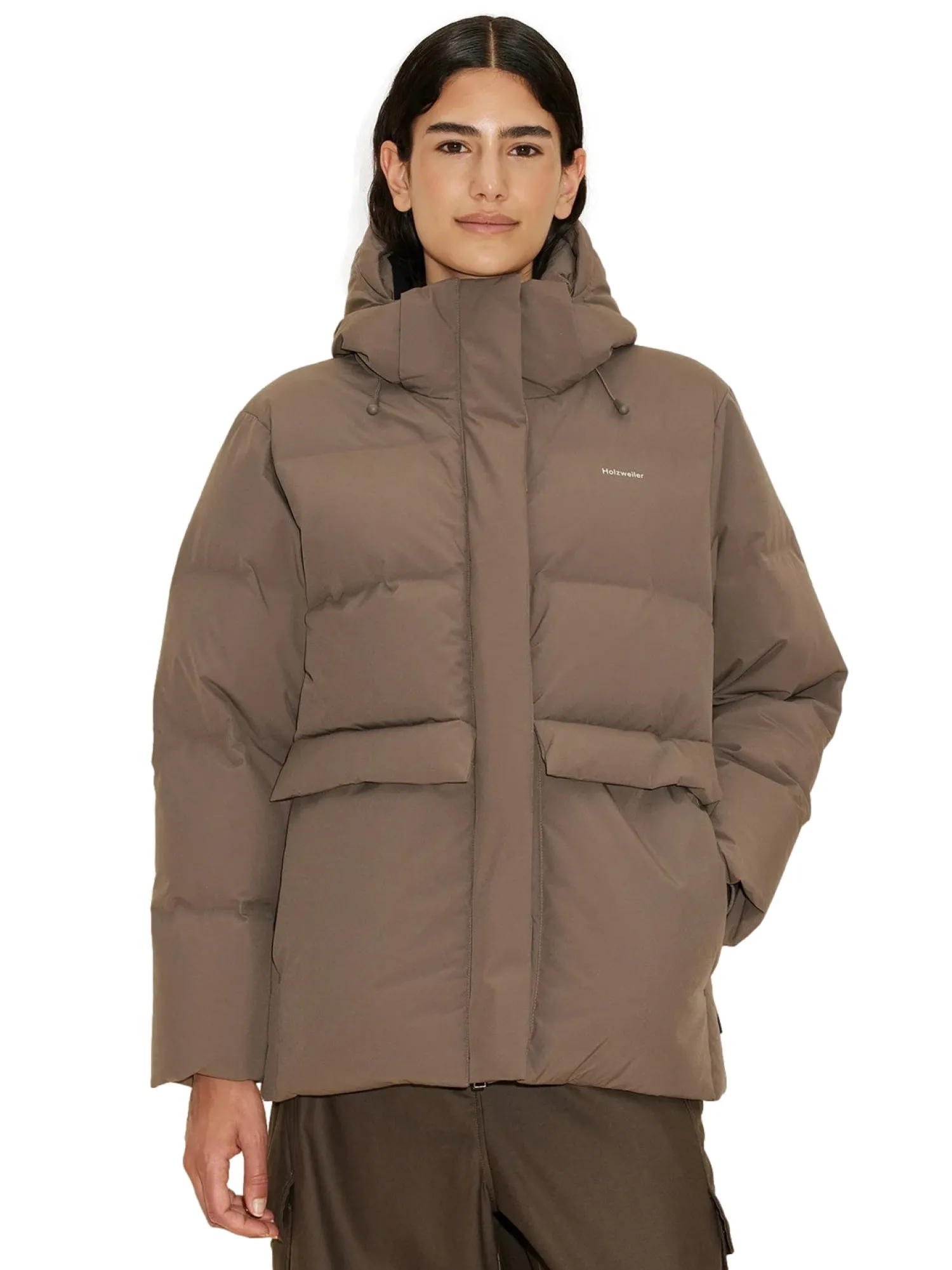 Varm og god dunjakke med liten logo på brystet. Jakken er fylt med dun og fjær som holder deg varm. Laget av 100% resirkulert polyester.