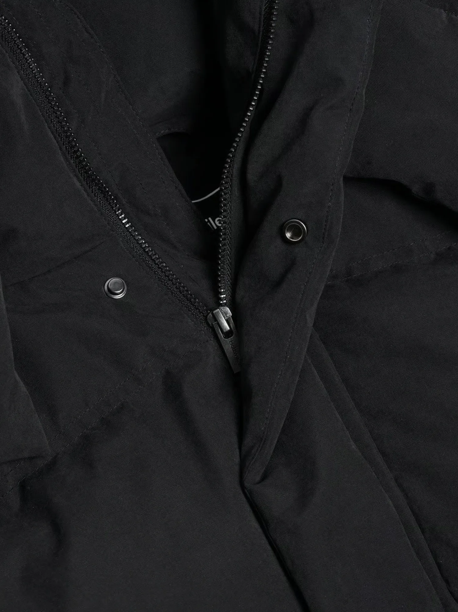 Narvik Brushed dunjakken er laget av et mykt, vannavvisende «ferskenfarget» stoff og vattert med RDS-sertifisert dun. Den har en avtakbar hette, glidelåslommer, en klafflomme på ermet, en toveis glidelås foran, en isolerende høy hals og snøring i kanten.